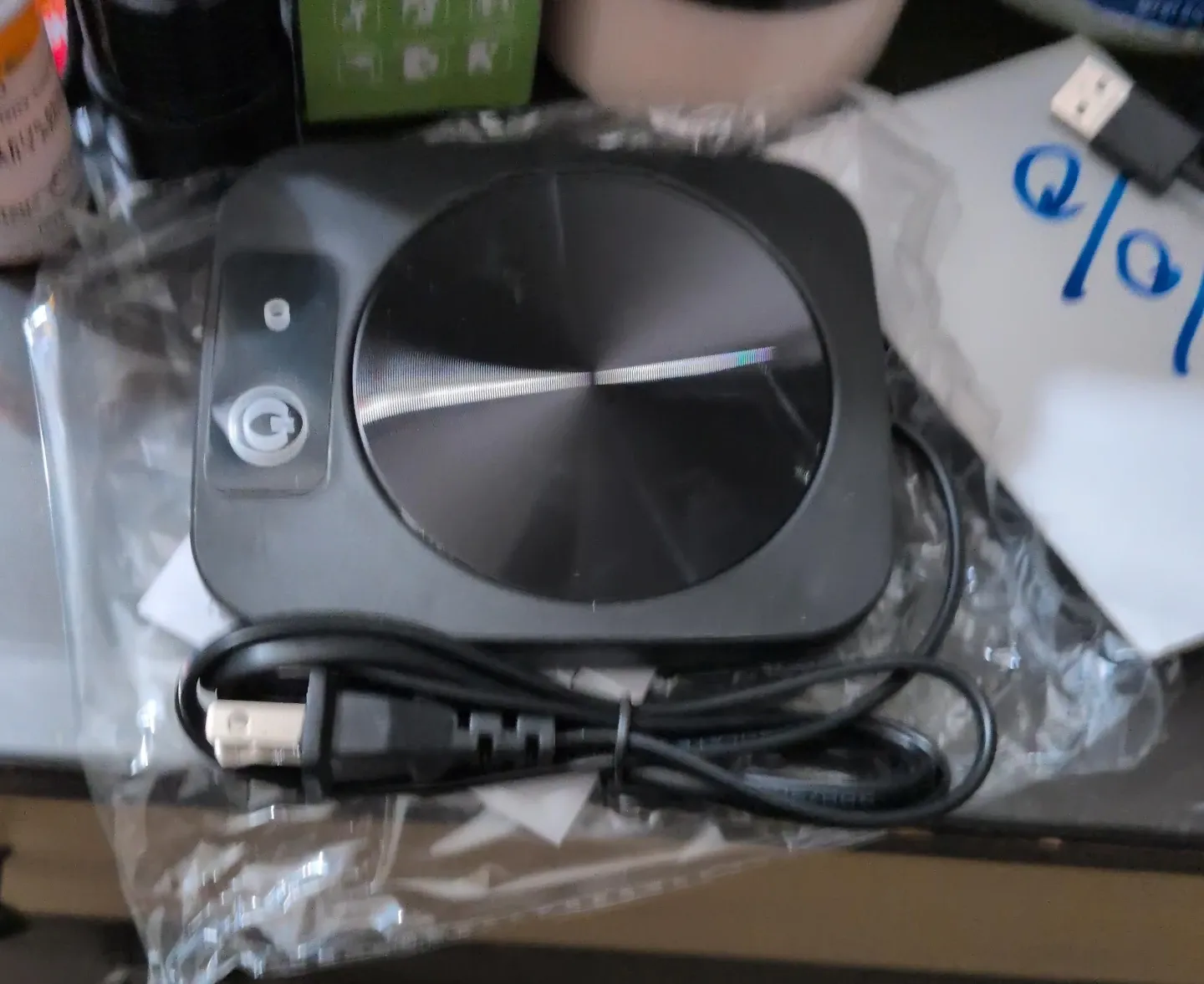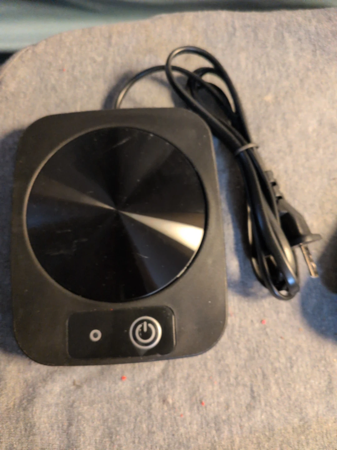 Keep your favorite beverages warm with this electric mug warmer. It features a power button and indicator light for easy use. The sleek black design fits well on any desk or countertop.