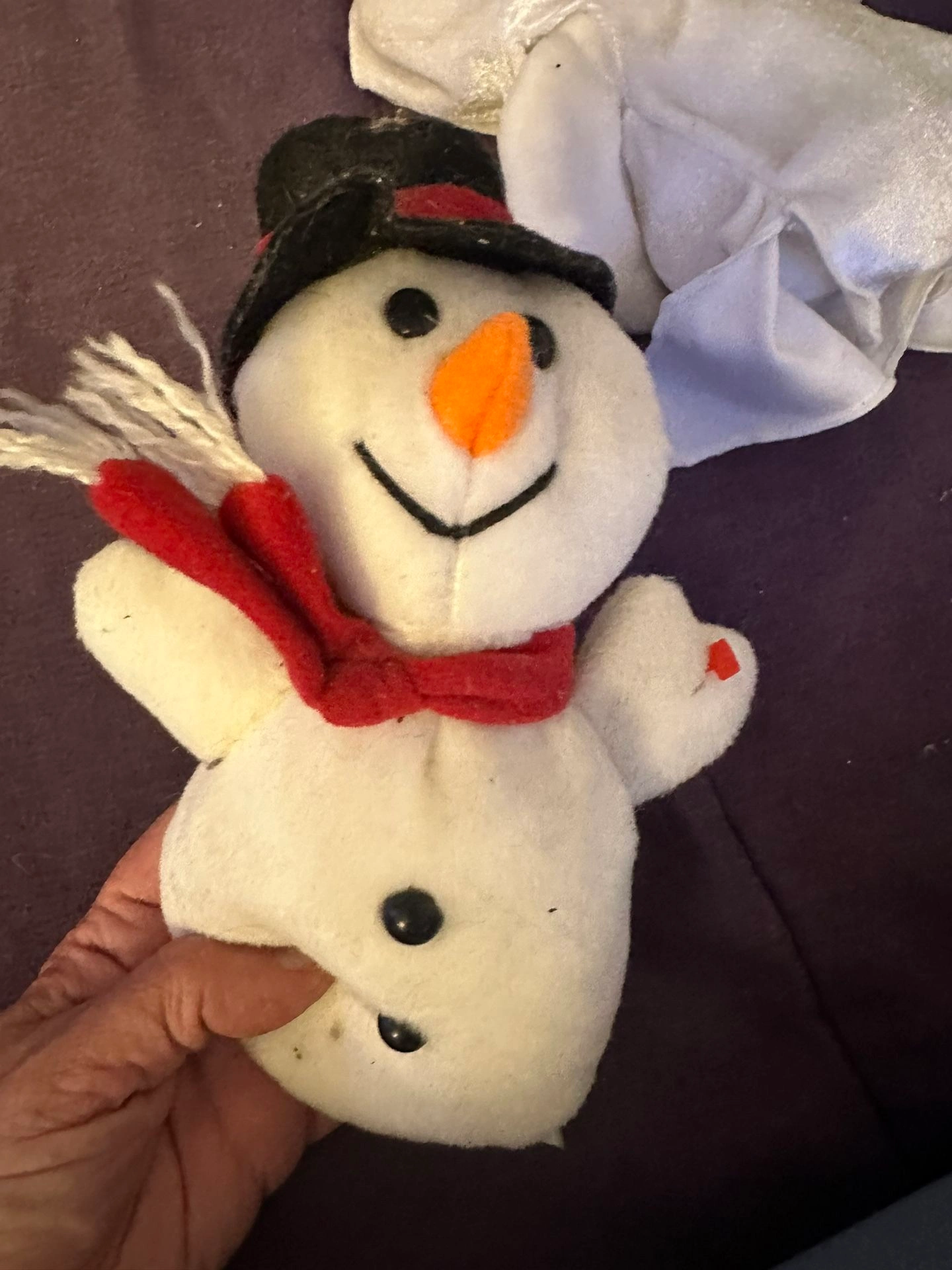 This is a classic Snowman Beanie Baby. It's in great condition and would make a wonderful addition to any collection. Let me know if you're interested!
