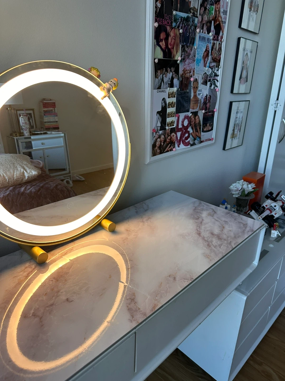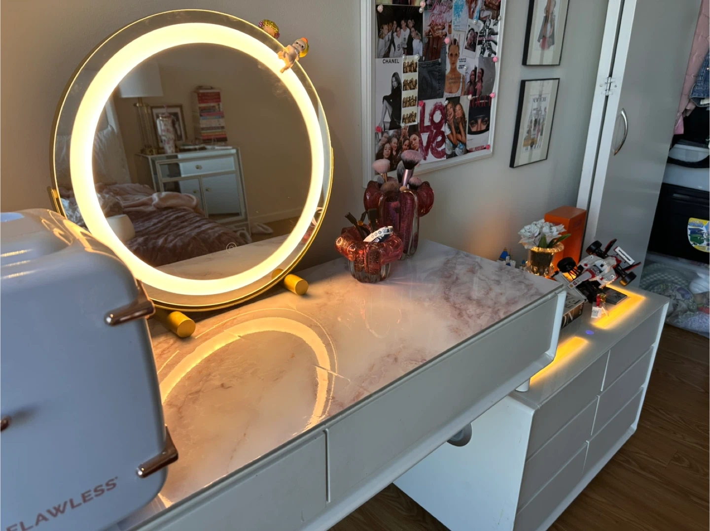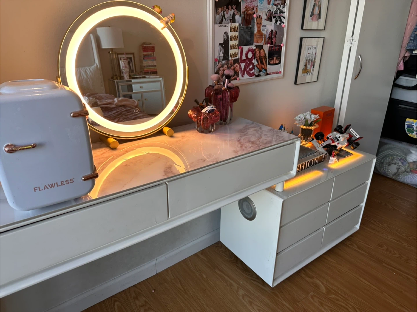 White Makeup Vanity with wireless Bluetooth speaker