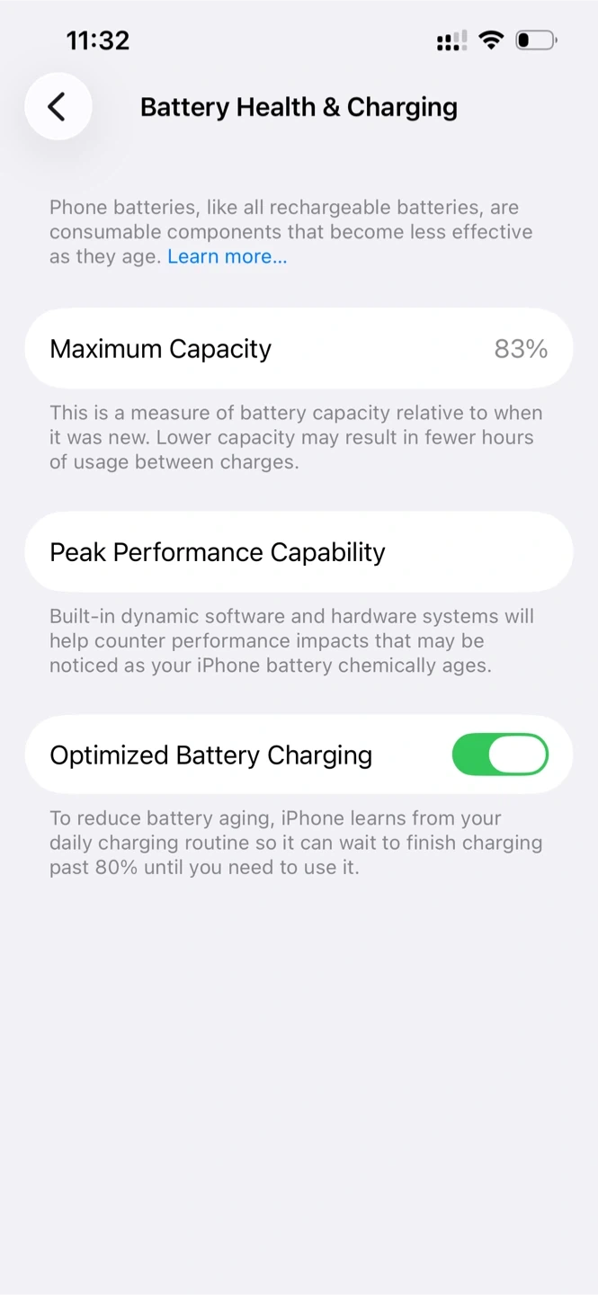 Unlocked baby blue iPhone 14 with upgraded 256 GB storage in blue. Maximum battery capacity is 83% and it’s operating at peak battery performance.