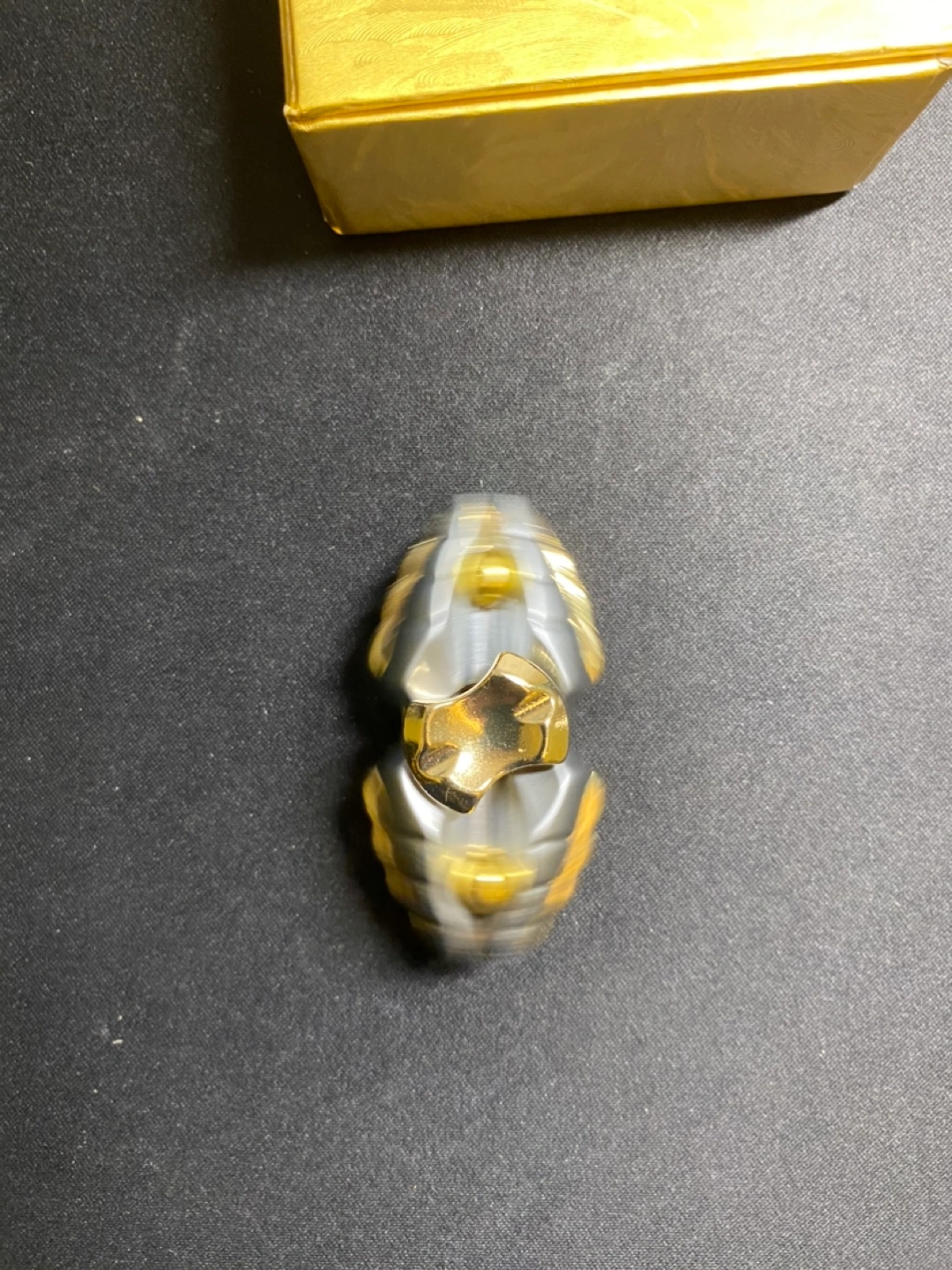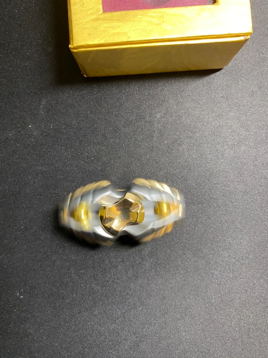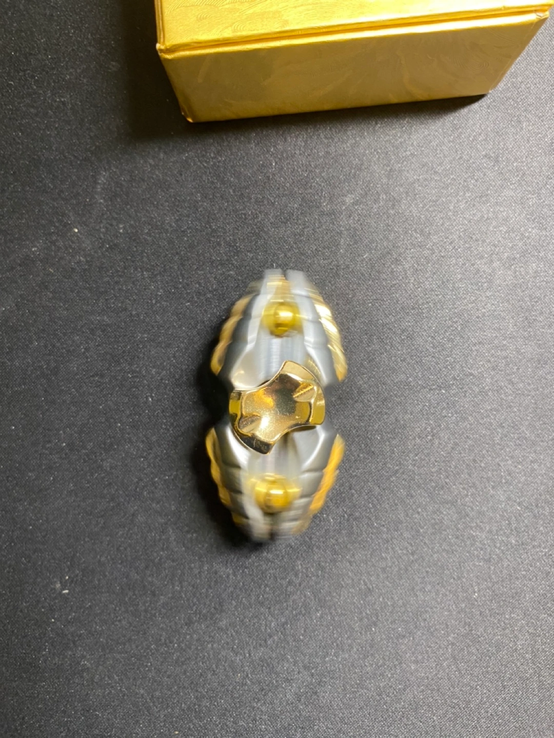 Premium metal fidget spinner. Smooth spinning action. Gold and grey design. Comes in a nice gold gift box. Perfect for anxiety relief or focus.