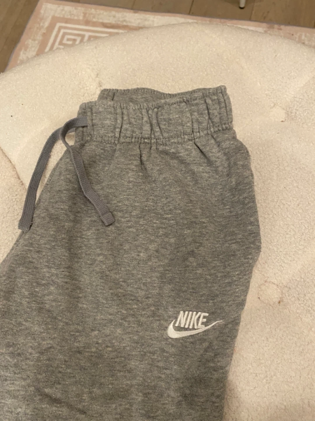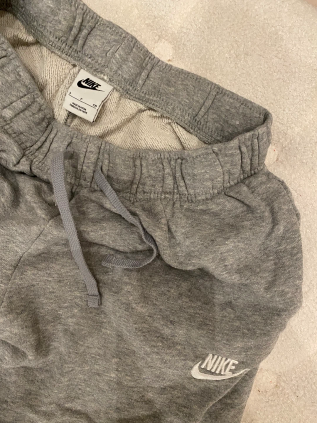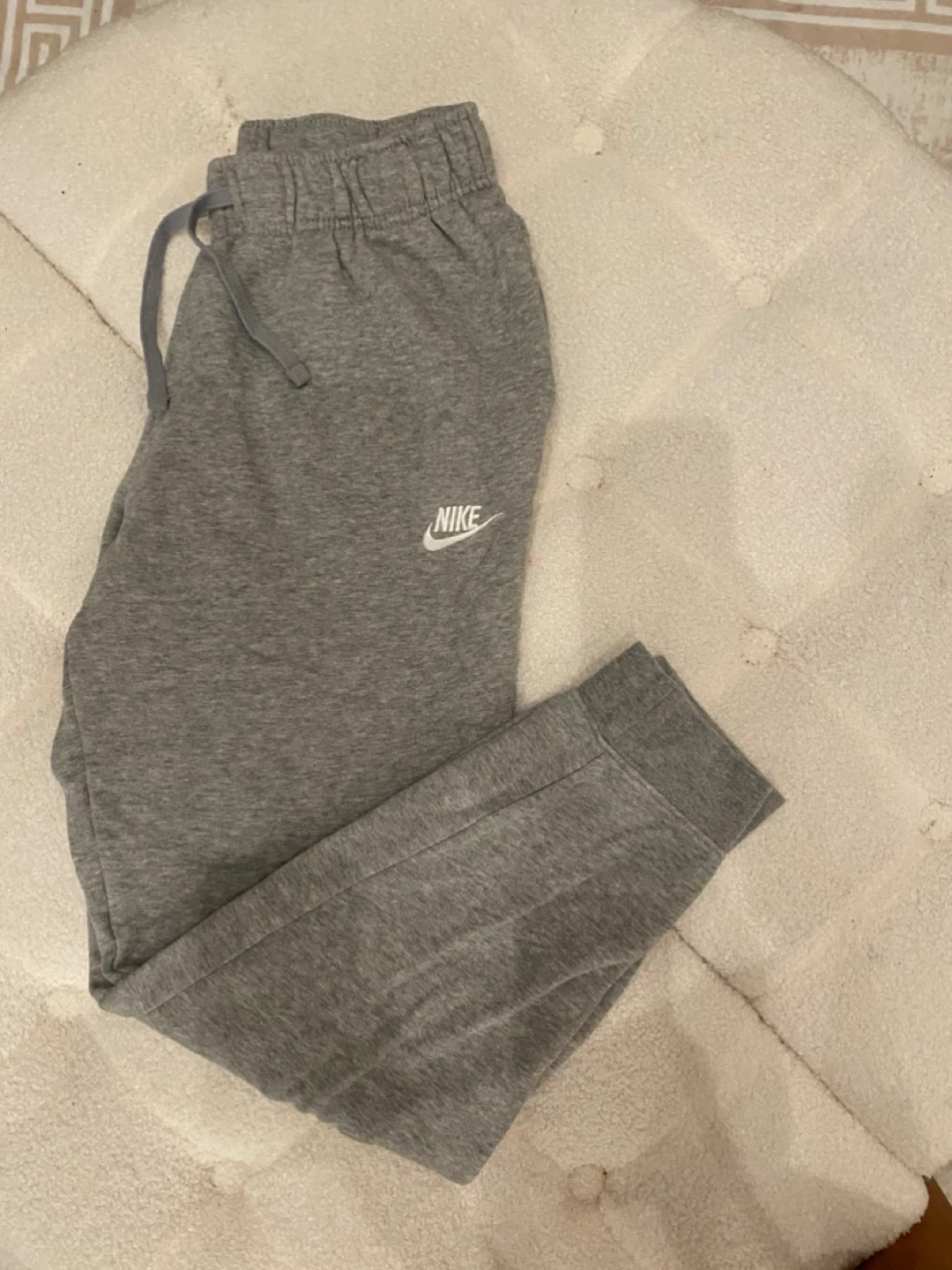 Selling a pair of comfy Nike sweatpants in a neutral gray color. They're a size small and in great condition, perfect for lounging or working out!