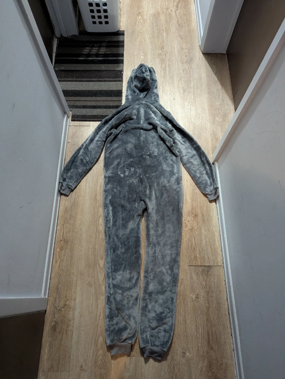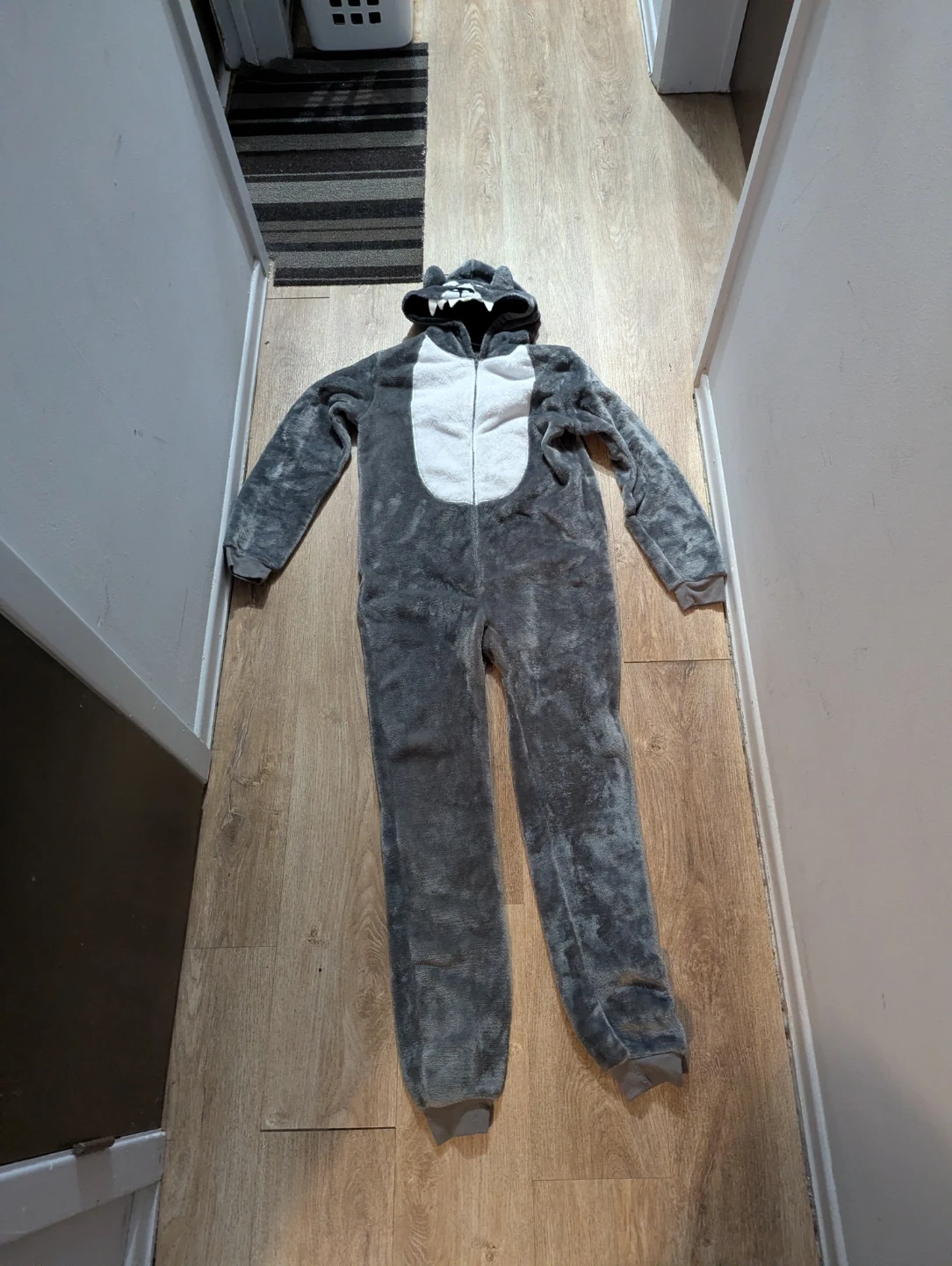 Kids' Jelly Fish Grey Wolf Onesie for sale! Only $15, offers accepted! Lightly used. Pickup starts in FEBRUARY.