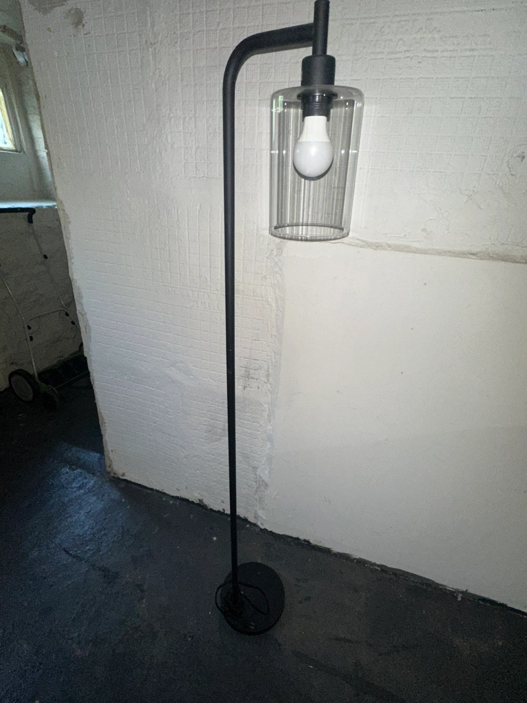 Selling a modern-style floor lamp in black. It features a sleek design with a clear glass shade. Perfect for adding a touch of contemporary style to any room
