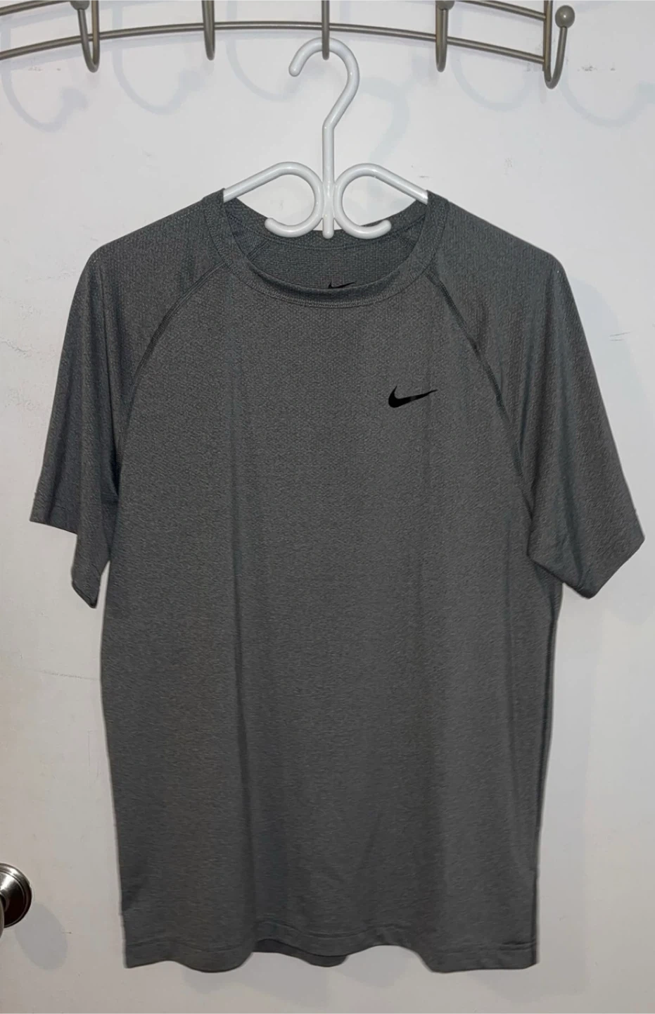 Nike Dri-FIT Gray Training T-Shirt - Fits women’s Size M. Is a Size S Men’s. $5 cash, porch pick up Kennedy and eglinton.
