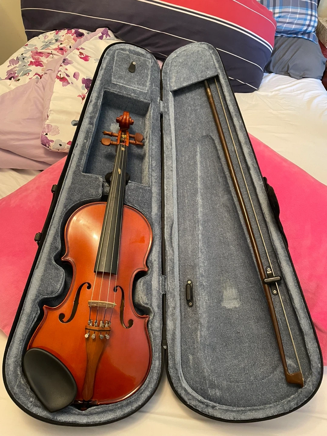 Selling a violin that comes with its case and bow. It's in good condition and ready to play! Great for beginners or experienced players alike. Comes with everything you need to get started