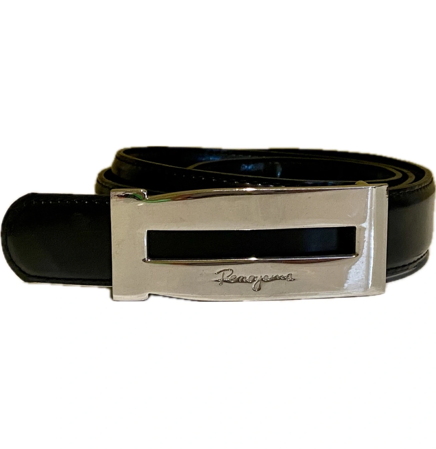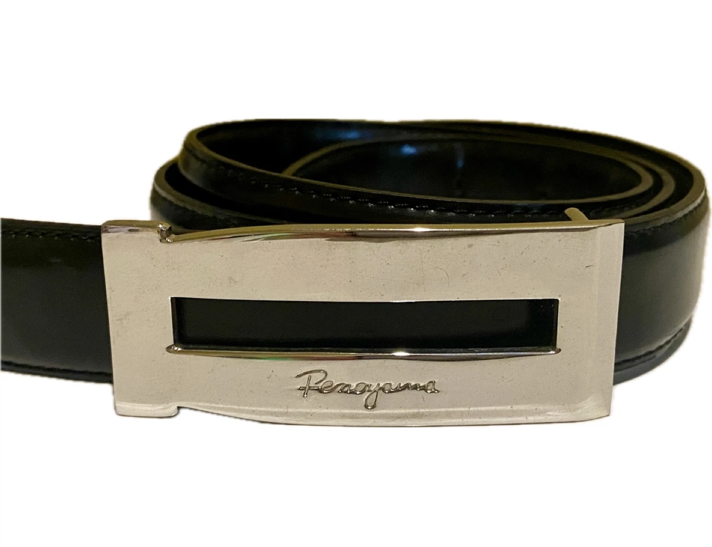 Salvatore Ferragamo Black Leather Belt with Silver Buckle