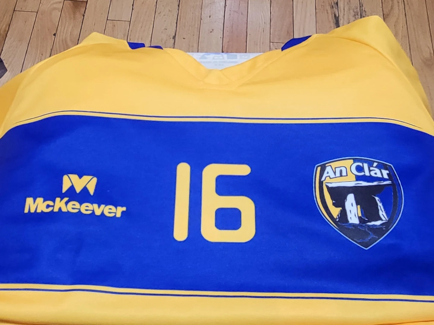 McKeever athletic jersey with "An Clár" and number 16. This authentic Irish sporting apparel is made in Ireland. Size XXL.