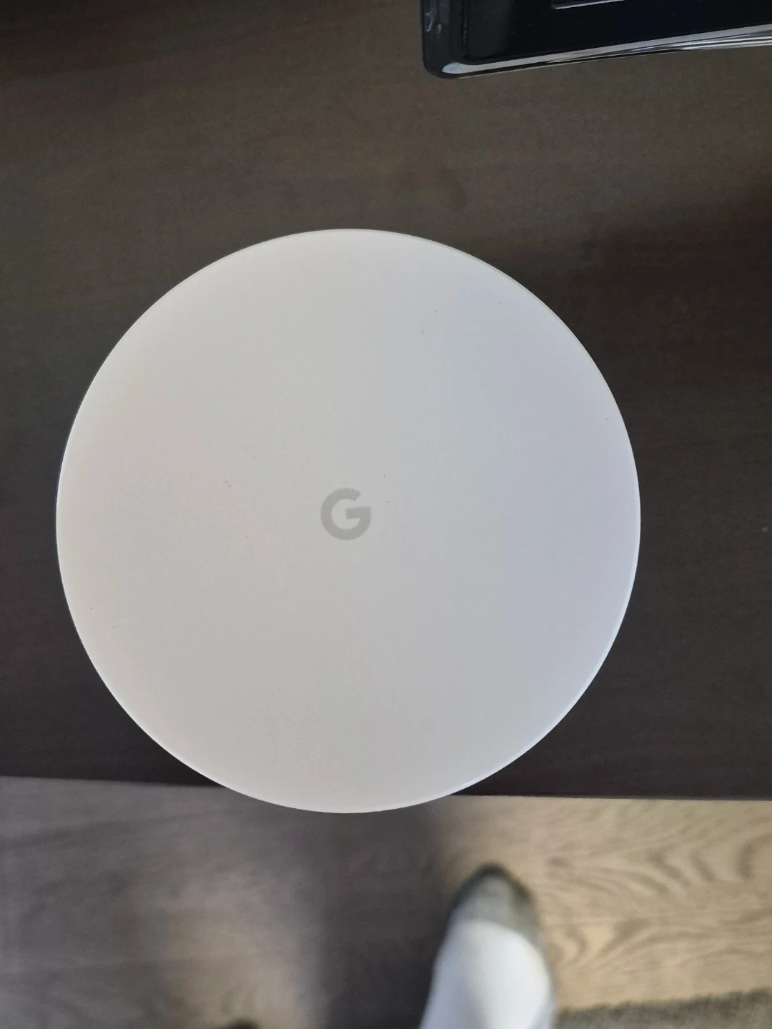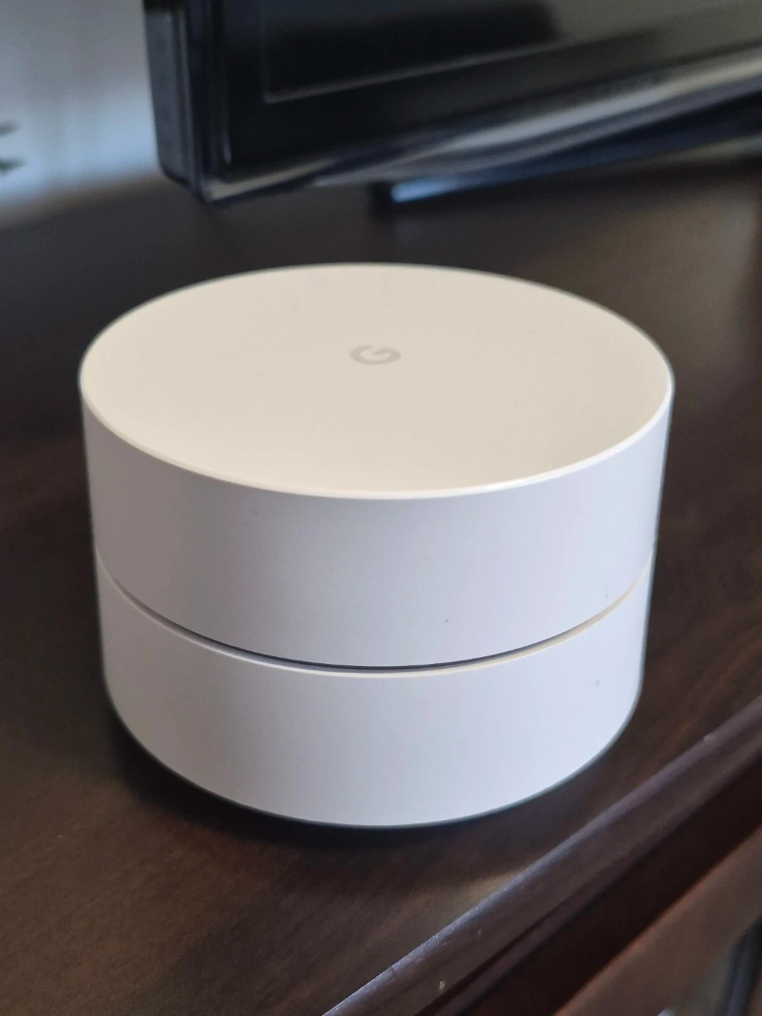 This is a Google Wifi router. It's a white, circular device. Comes with the original router. They help expand the wifi signal when paired.