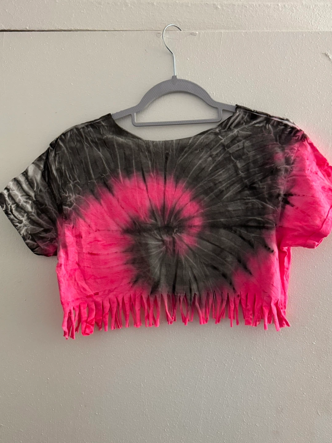 Jamaica No Problem Tie-Dye Crop Top with Fringe - Size M