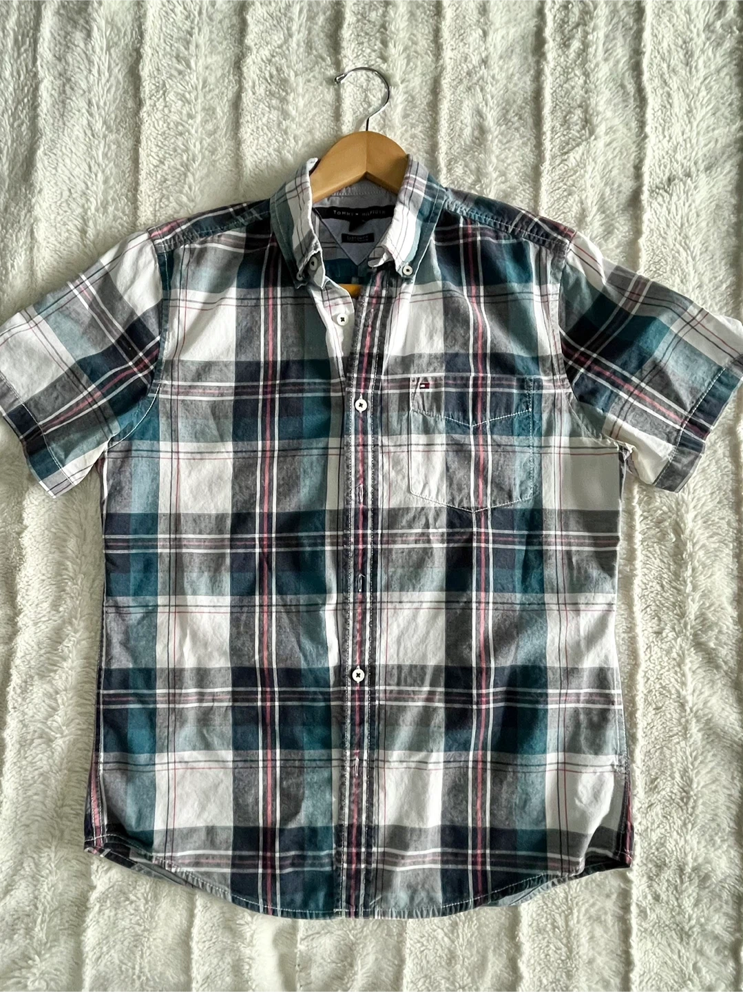 Tommy Hilfiger Custom Fit Plaid Short Sleeve Shirt (S) π