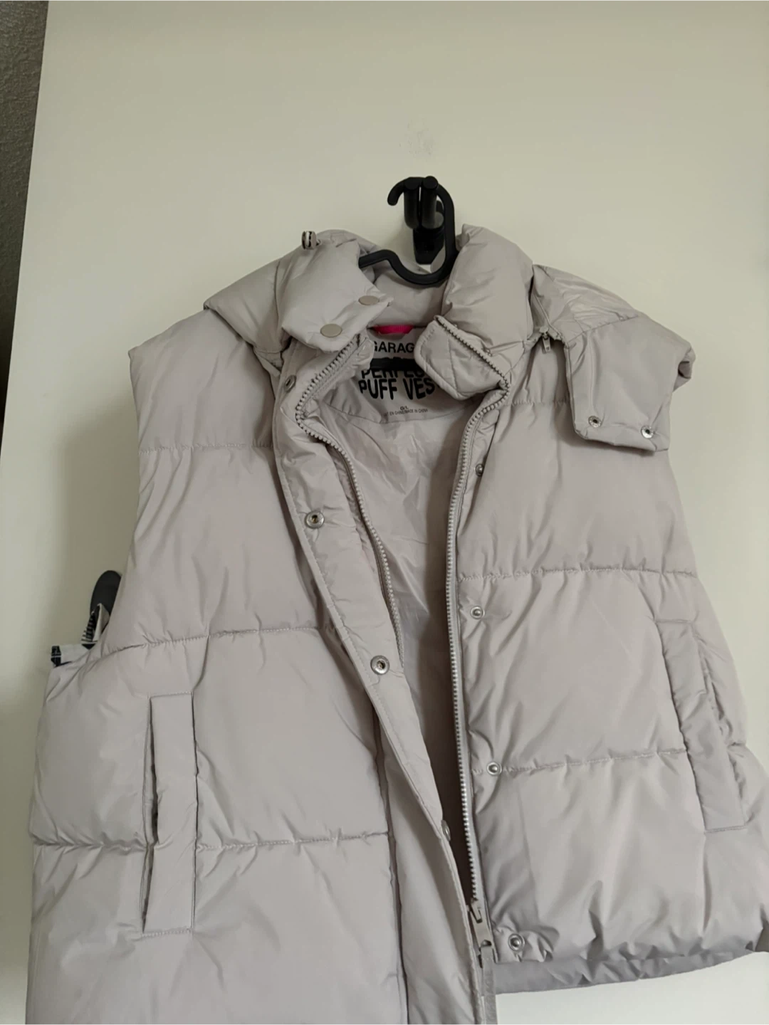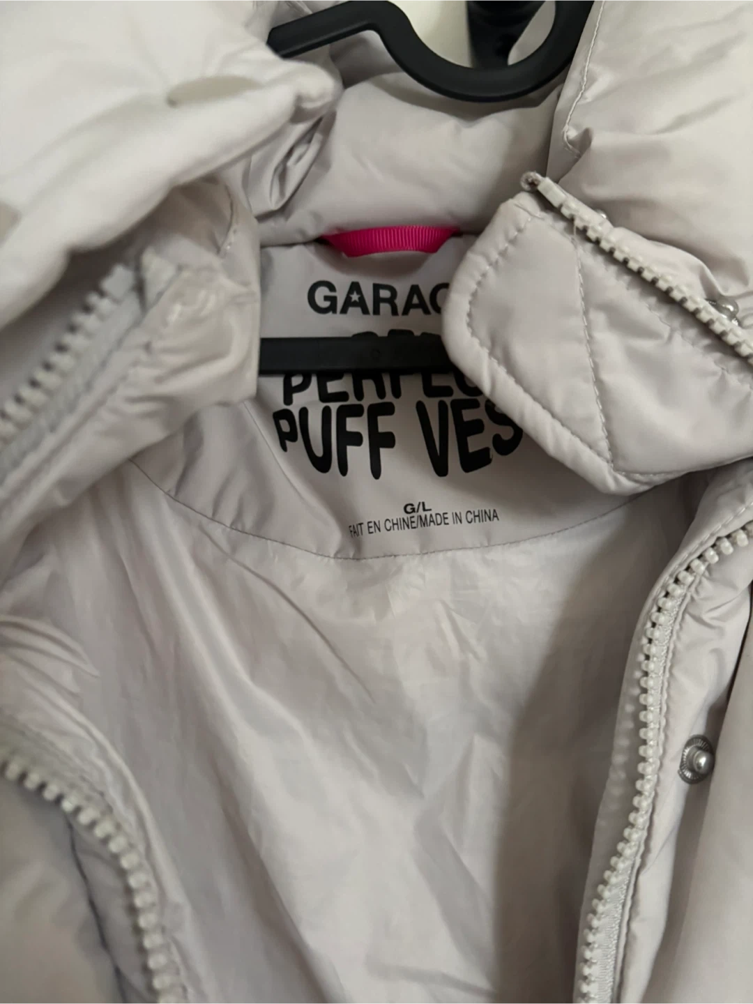 Garage puff vest is a great layering piece. It's made of durable material and features a full zip closure. The vest offers a relaxed fit, perfect for cooler weather. comes with hood