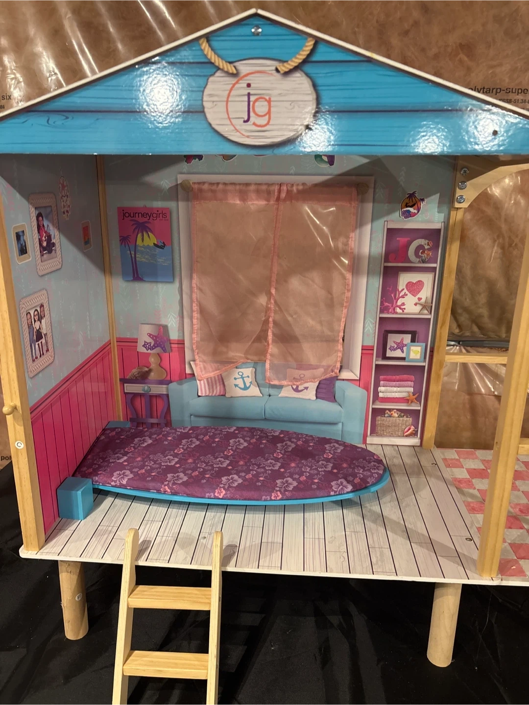 This is a Journey Girls beach house. It's a charming dollhouse with surf bed and ladder. It's perfect for imaginative play and storytelling!
