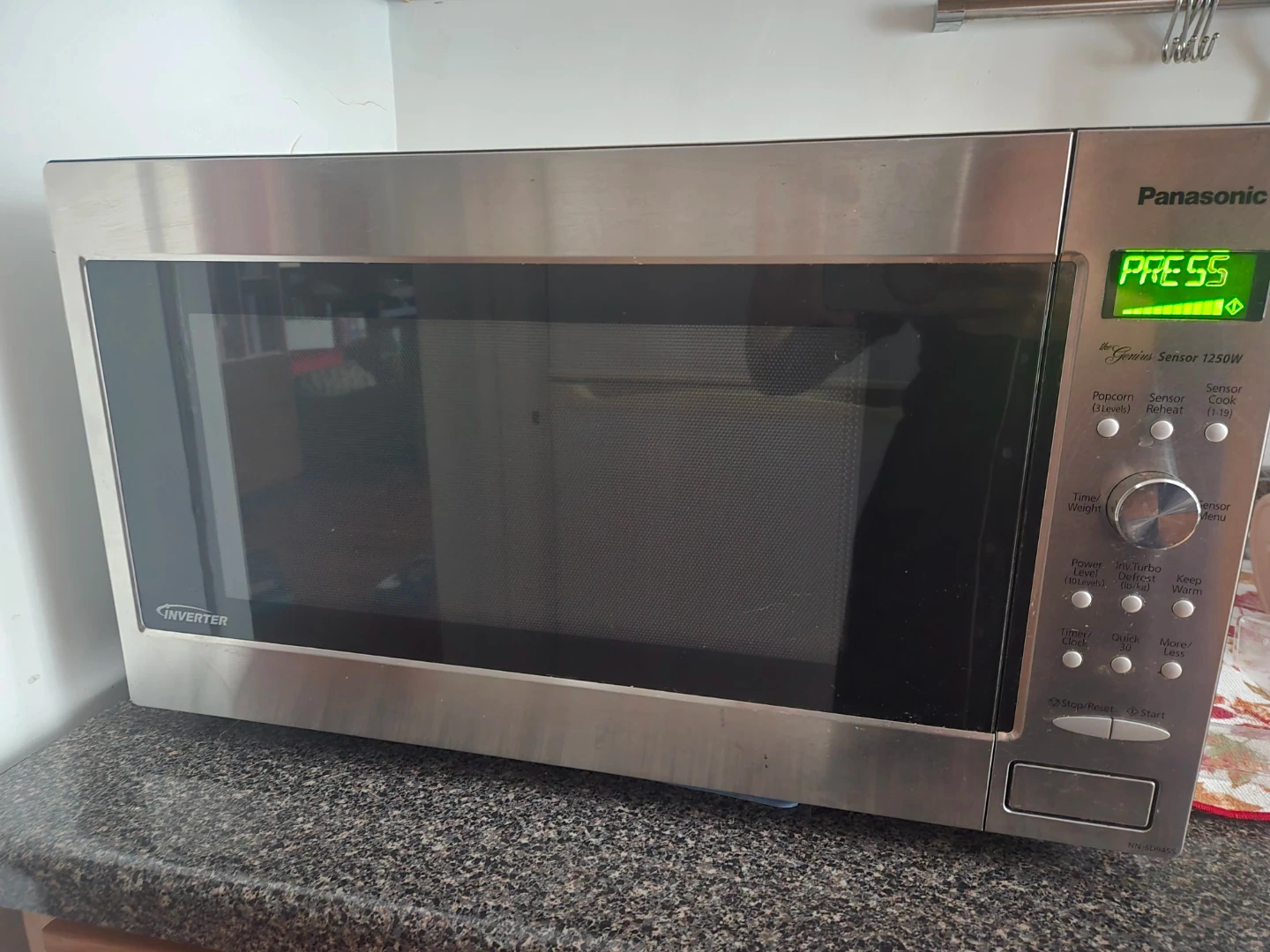 What AI says: Panasonic microwave oven with Genius Sensor technology. It's 1250W and features multiple sensor cooking and reheating options. Inverter technology for efficient cooking. Stainless steel exterior.