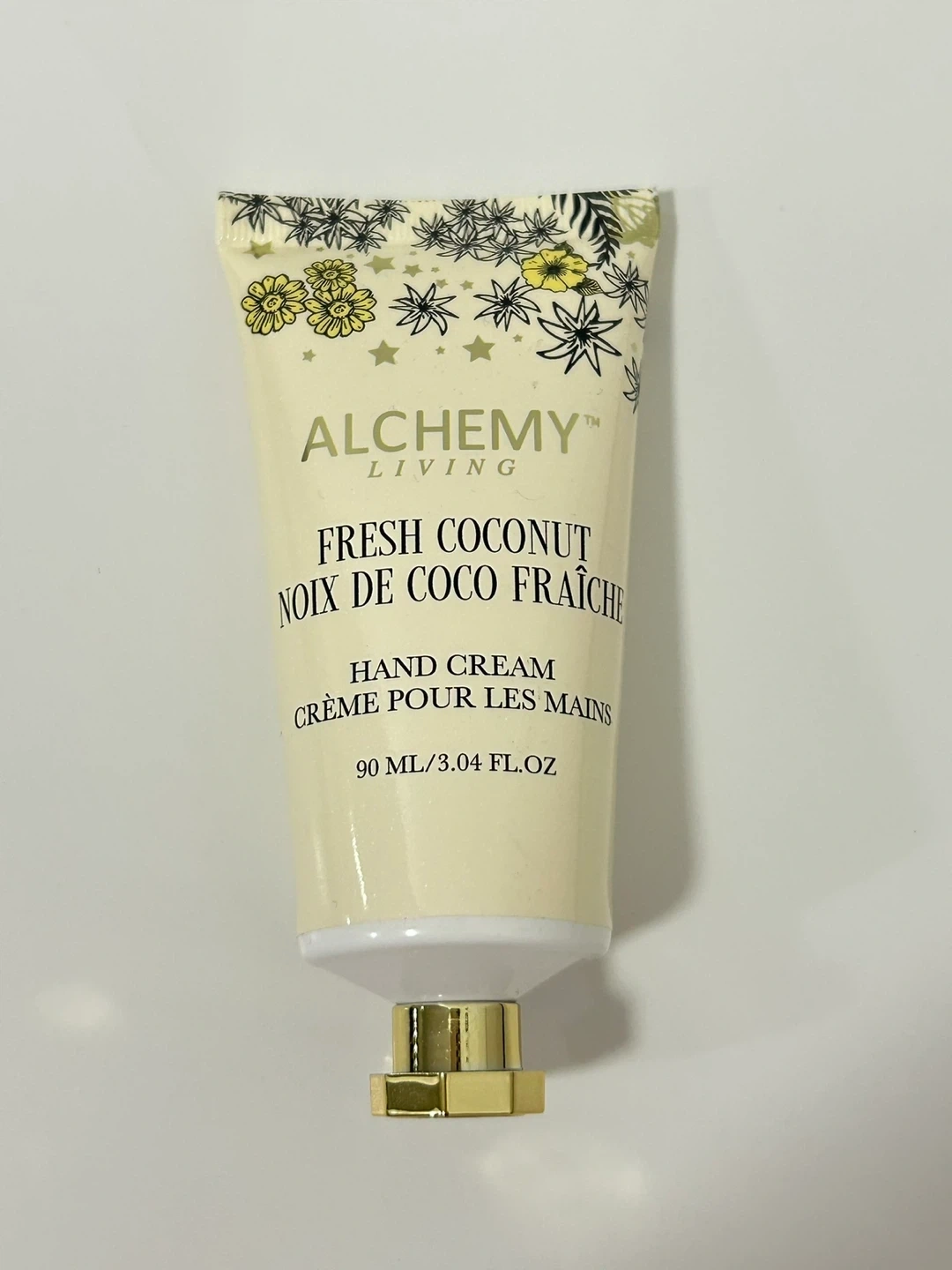 This is a 90ml tube of Alchemy Living Fresh Coconut hand cream, perfect for moisturizing on the go. It's brand new condition! I have too much extra hand cream that I no longer need anymore