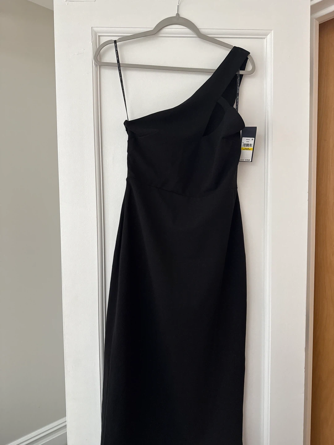 Selling a beautiful black dress . It features a stylish one-shoulder design. Perfect for a night out!