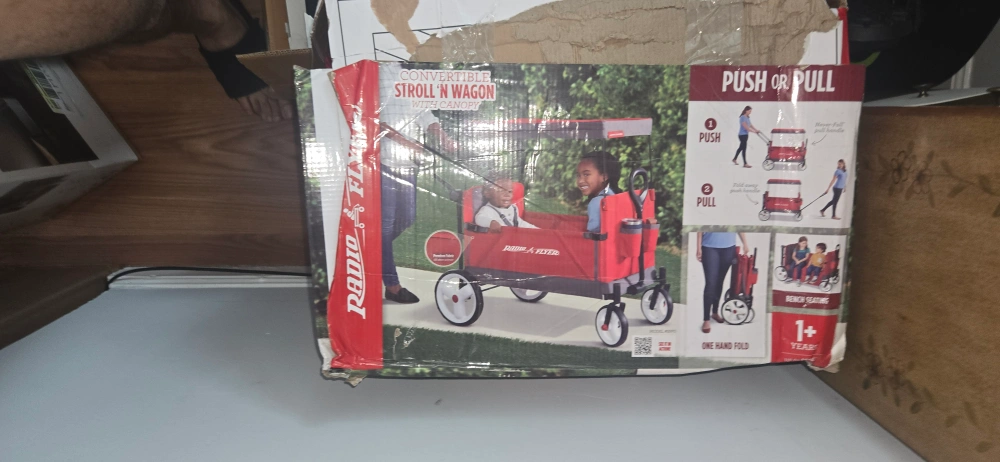 Selling a Radio Flyer Convertible Stroll'N Wagon with Canopy! It can be pushed or pulled. It also has bench seating and one hand fold. Recommended for ages 1+