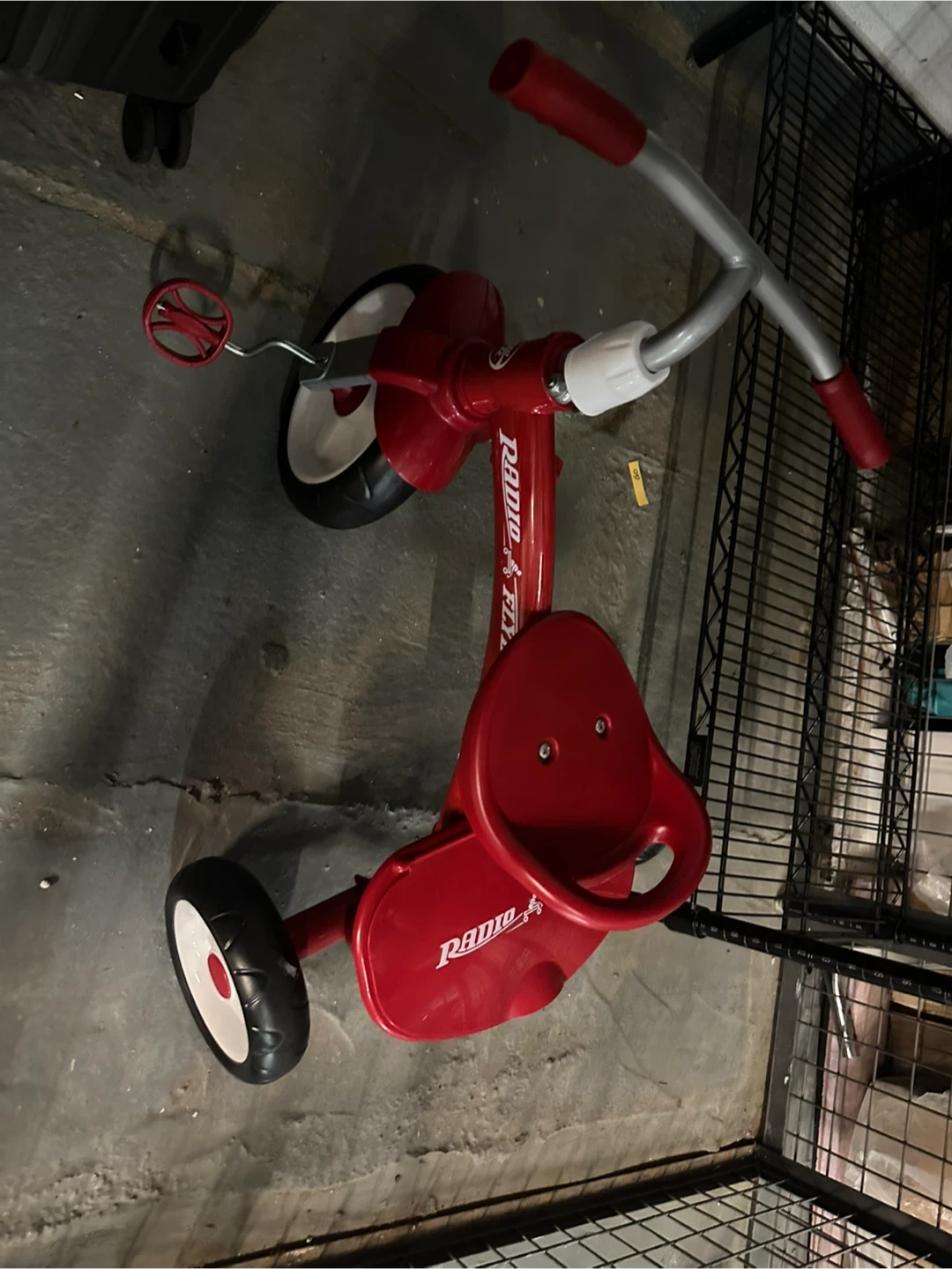 Here's a classic red Radio Flyer tricycle! It's perfect for little ones learning to ride. This trike has a sturdy build and is ready for some fun adventures
