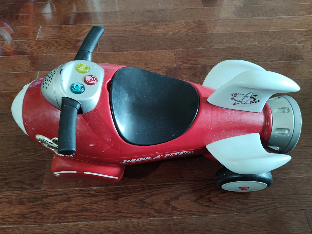 Selling a Radio Flyer Retro Rocket ride-on toy! It's red and white, and features a fun rocket design. Perfect for little adventurers!