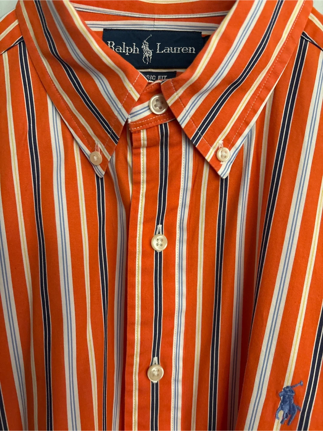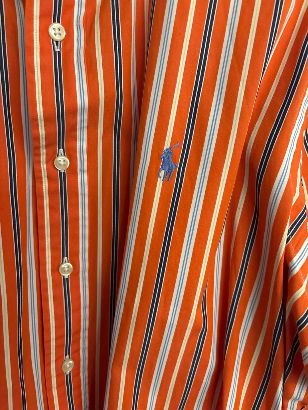 Ralph Lauren Orange Striped Classic Fit Shirt - L