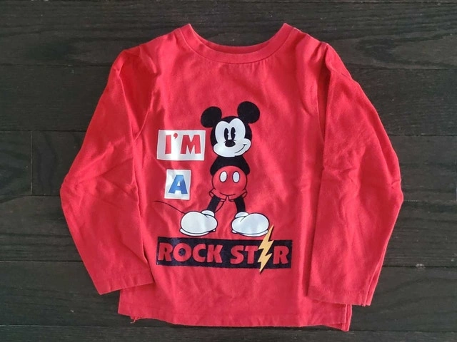 This is a cute, like new, long-sleeved red Disney Mickey Mouse shirt for boys, size 3T. I'm clearing out space in my kids' closets, and this shirt is looking for a new home! Brand: Disney. Character: Mickey Mouse. Sleeve Length: Long Sleeve. I've priced this shirt at a fair market value. Don't let this rockstar shirt slip away!