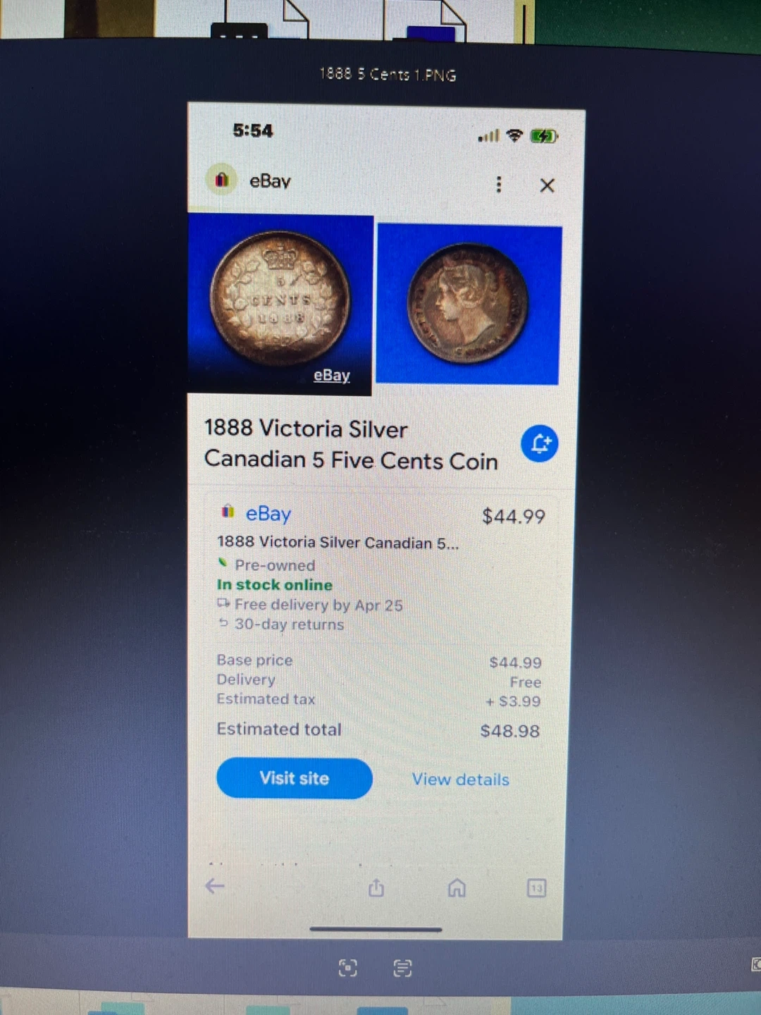 Selling Rare 1888 Victoria Silver Canadian 5 Cent Coin. It was listed on eBay for $44.99. Ave U and East 66th Street, Brooklyn Local Pickup Only.