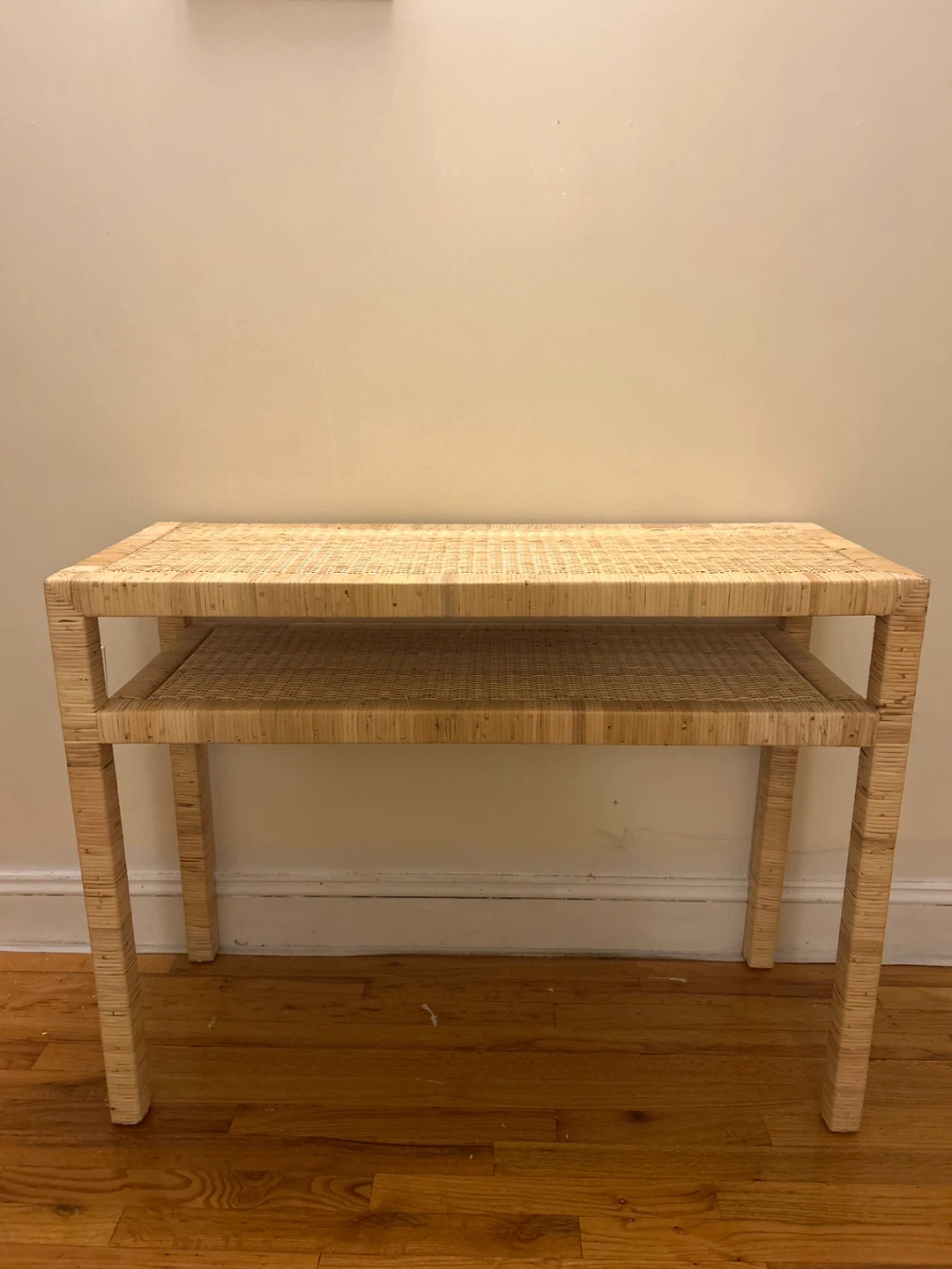 71Selling a Kalimantan Bohemian Light Honey Rattan and Acacia Wood Console Table! It's in perfect condition and would be a lovely addition to any room. I have only used it for 5 weeks so it's basically in new condition