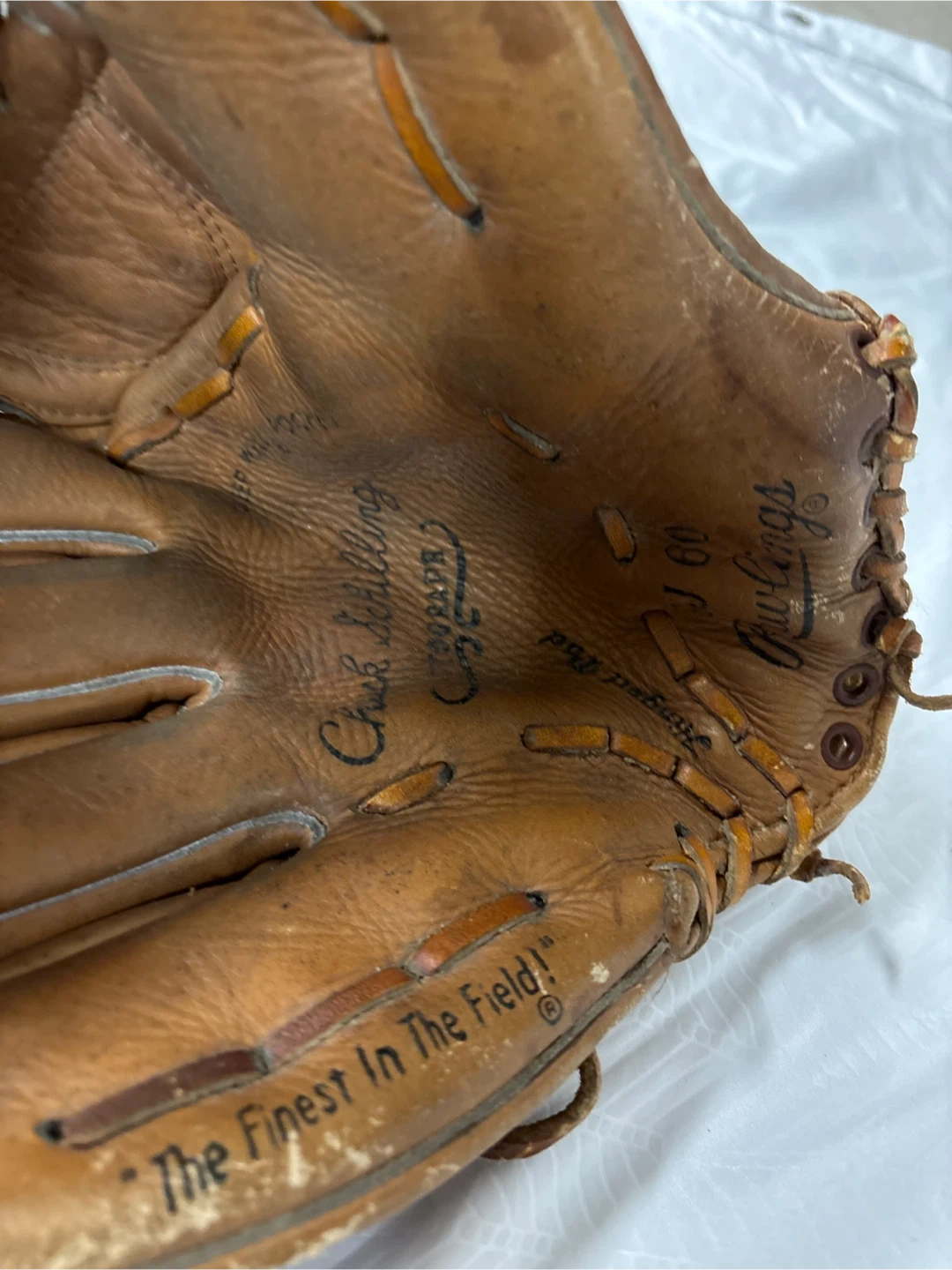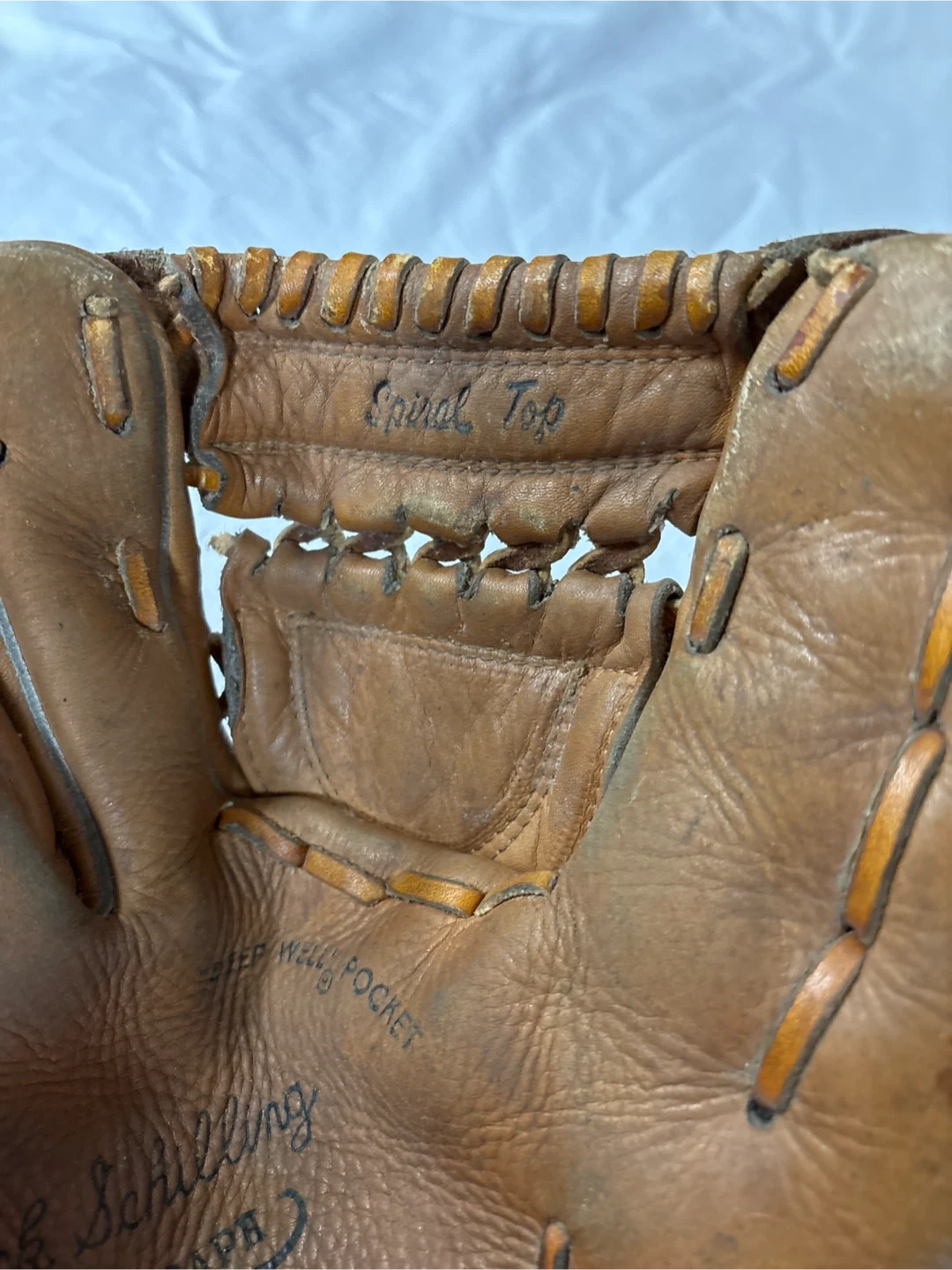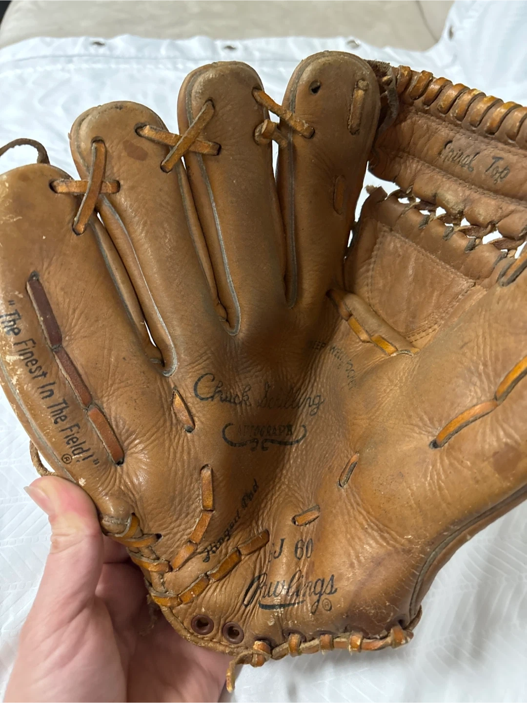 Selling a Rawlings baseball glove. It has a "Spiral Top" and a "Deep Well Pocket". The glove says "The Finest In The Field!".