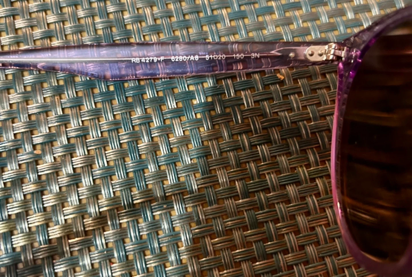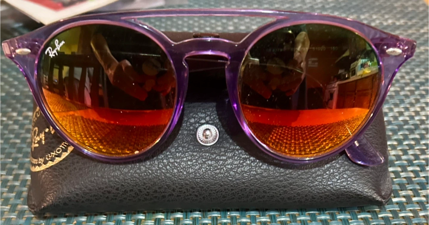 Selling a pair of Ray-Ban RB 4279-F sunglasses. They are a stylish purple color and come with the original Ray-Ban case. The sunglasses have the following measurements: 51 20 150 3N.