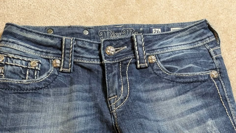 Miss Me Jeans! Size - women's 26. Tired of curated thrift shops charging you literally $100+ for a pair of these jeans? Buy it off me selling it for a more reasonable price!
