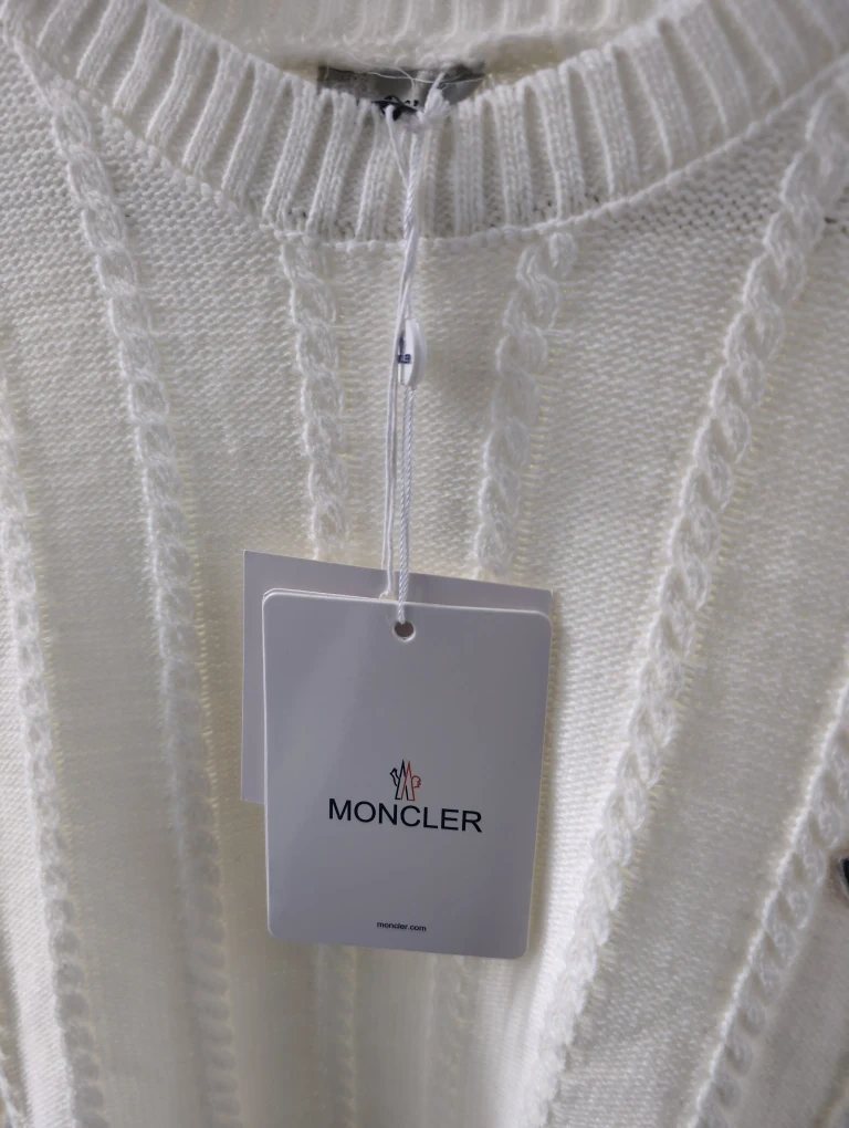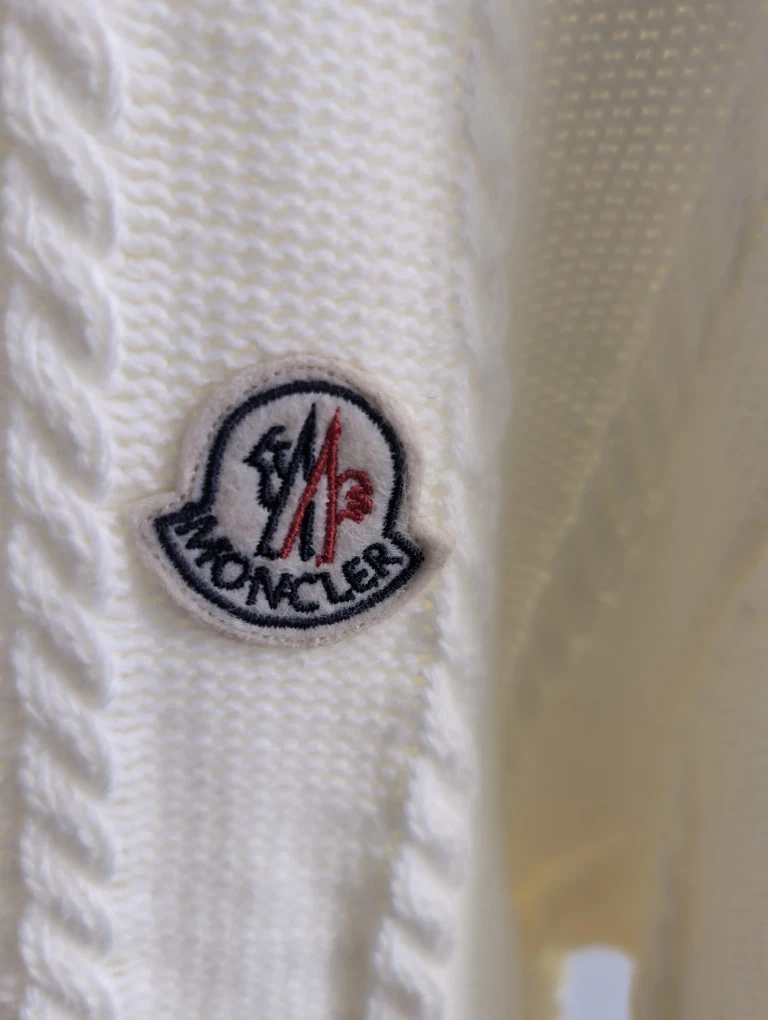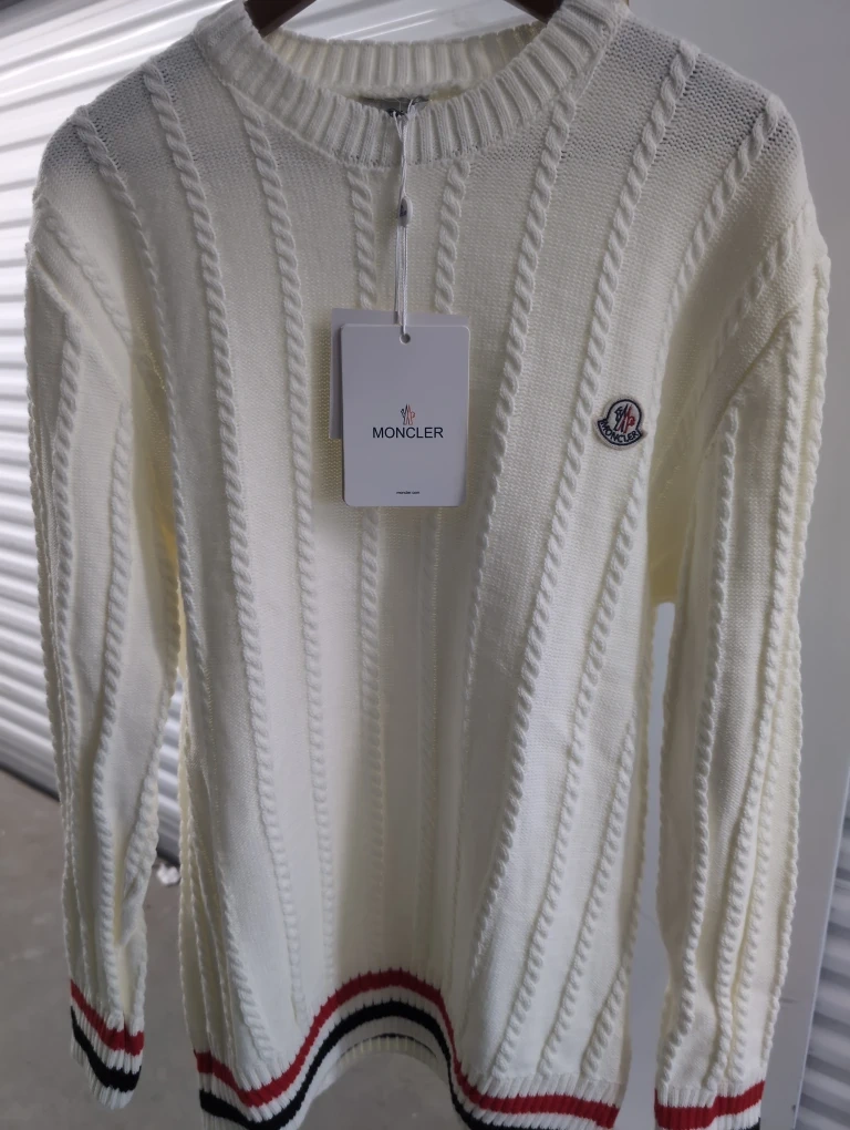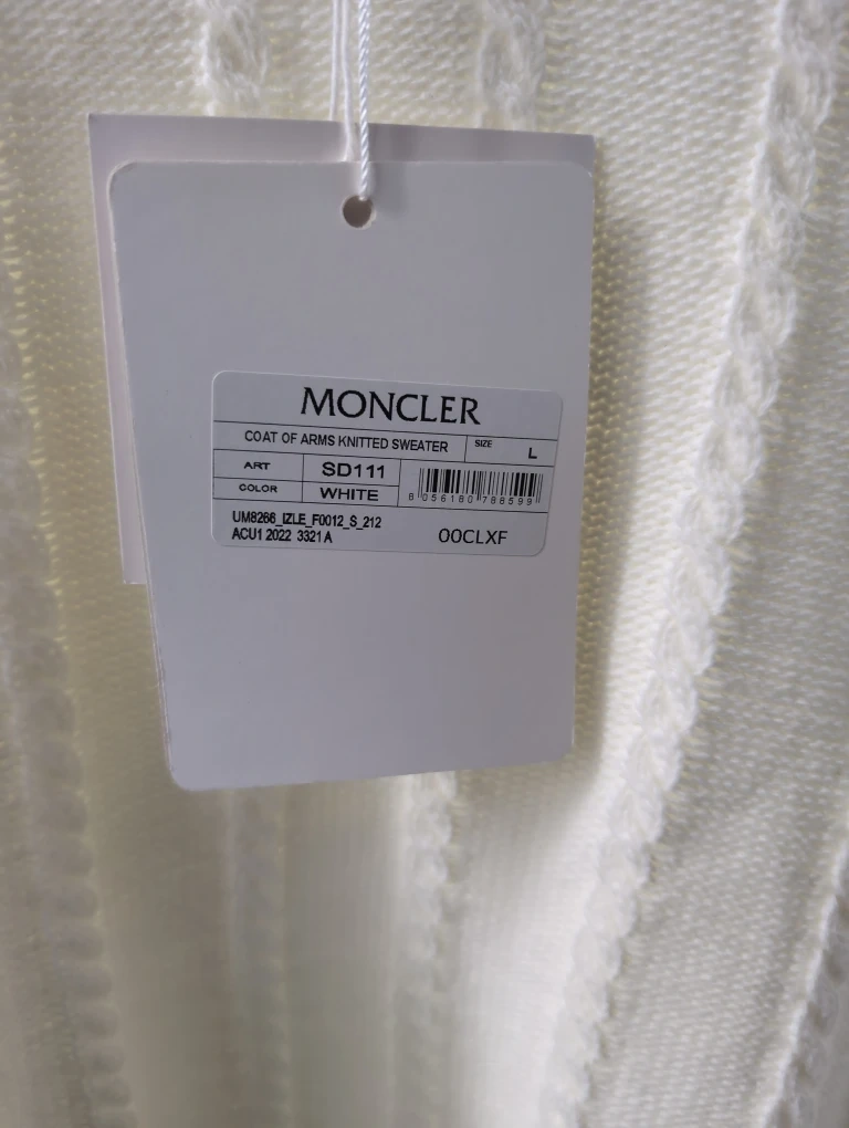 Selling a Moncler 'Coat of Arms' knit sweater in white, size large. It's in great condition and ready for a new home!