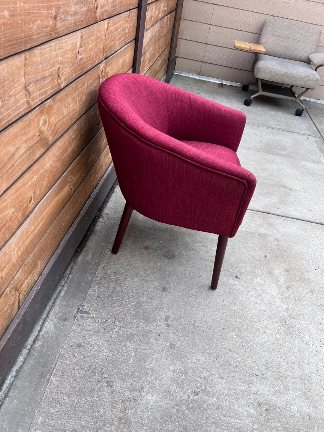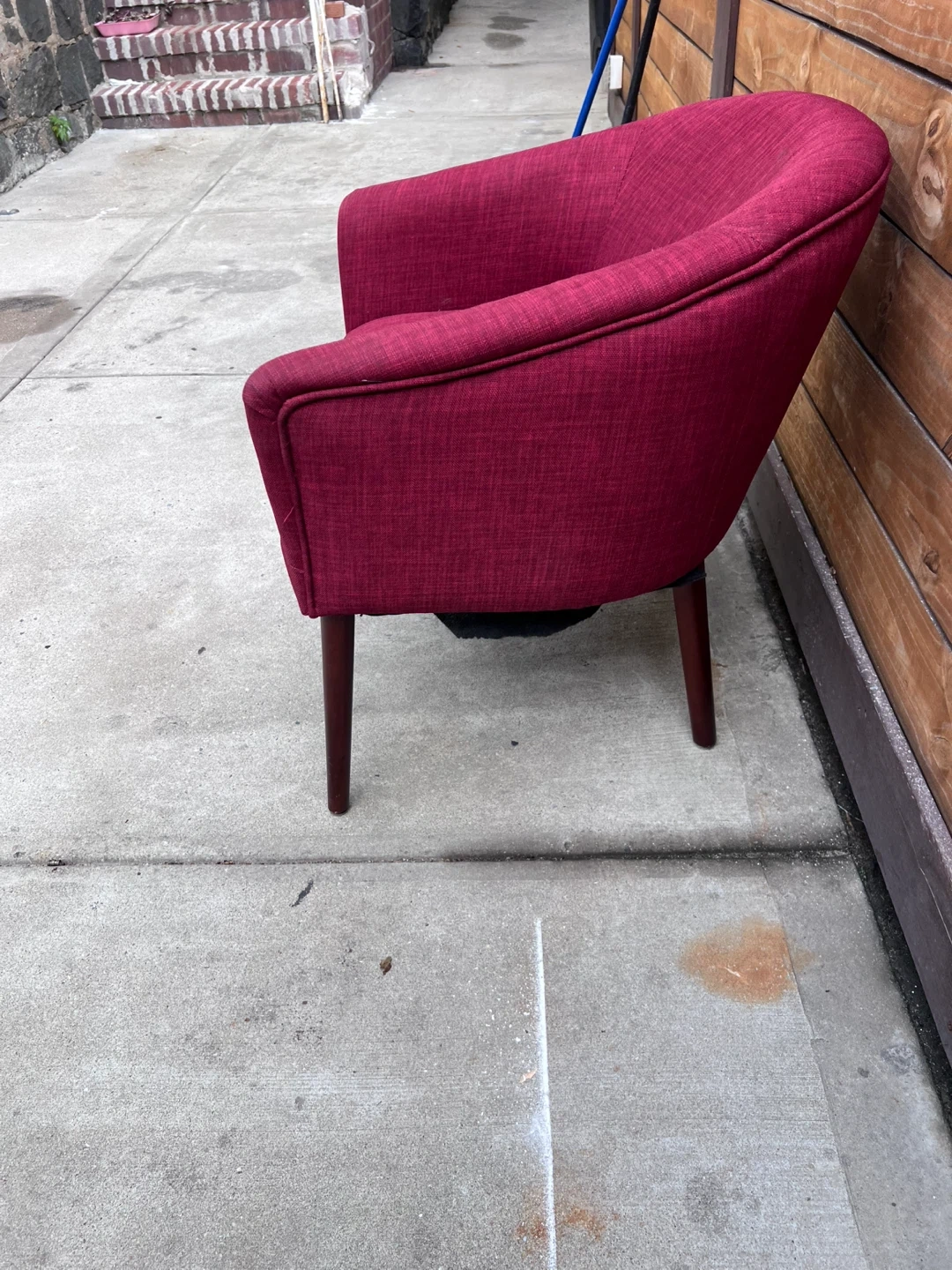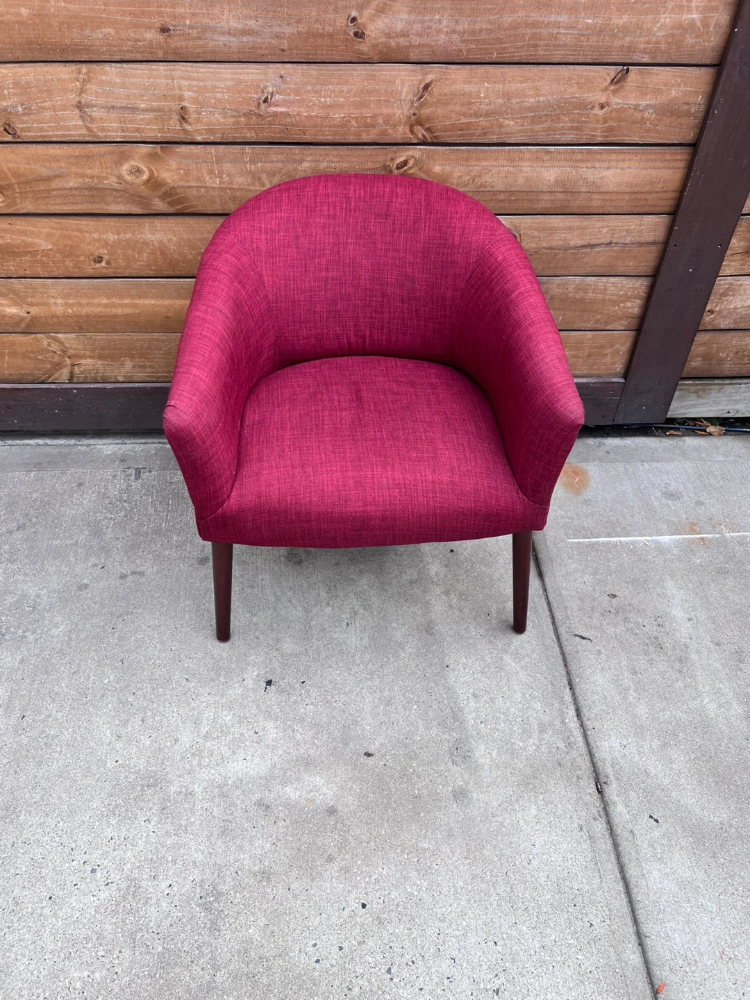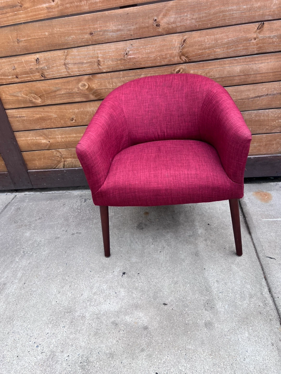 84Selling a cute red accent chair! It's in great condition and would look great in any living room or bedroom. It's a nice pop of color and is comfortable to sit in. Great for adding a touch of style to your space