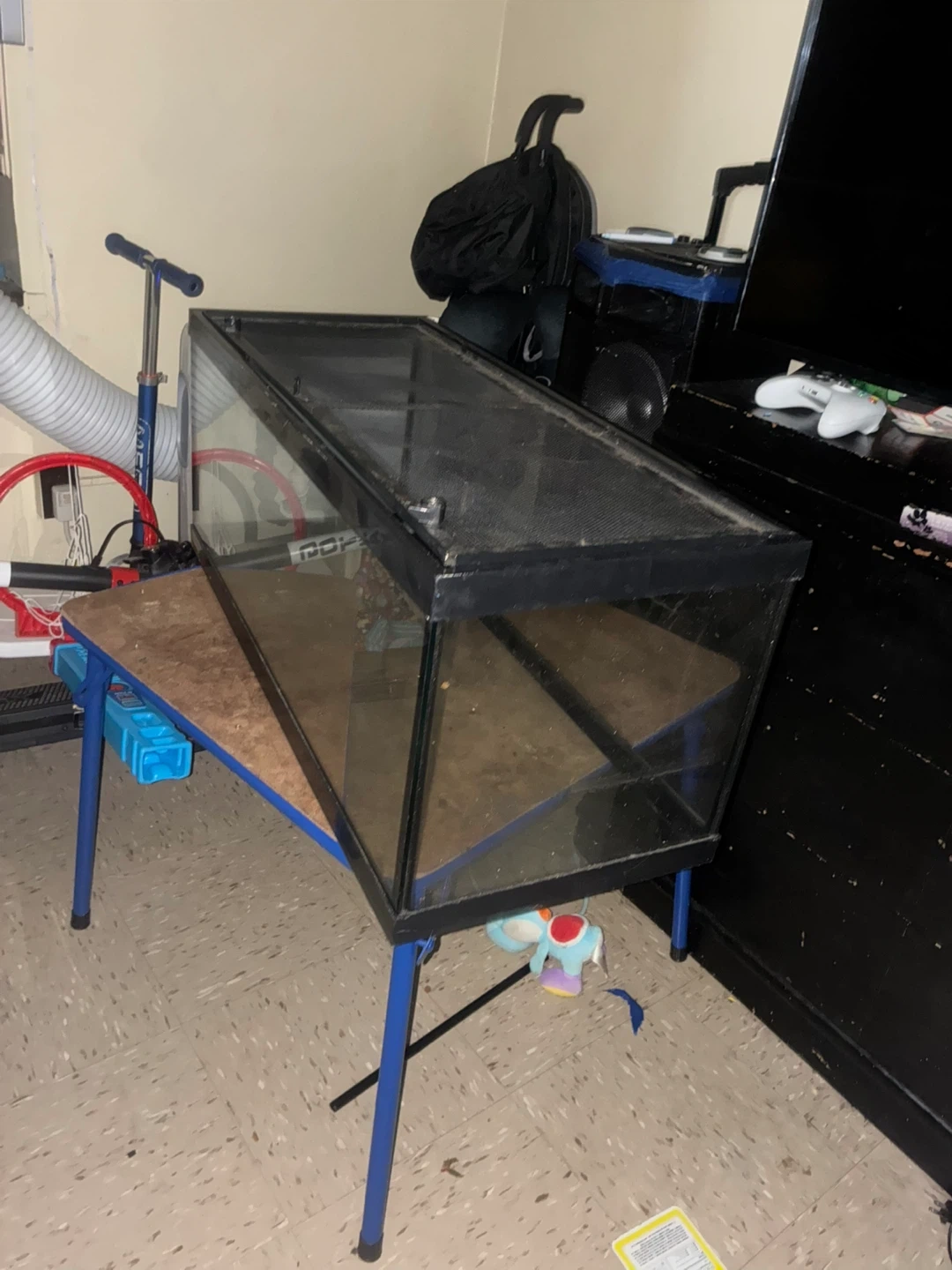 Selling a used reptile terrarium. It has a black frame and a mesh top for ventilation. It's in good condition and ready for a new home for your scaly friend