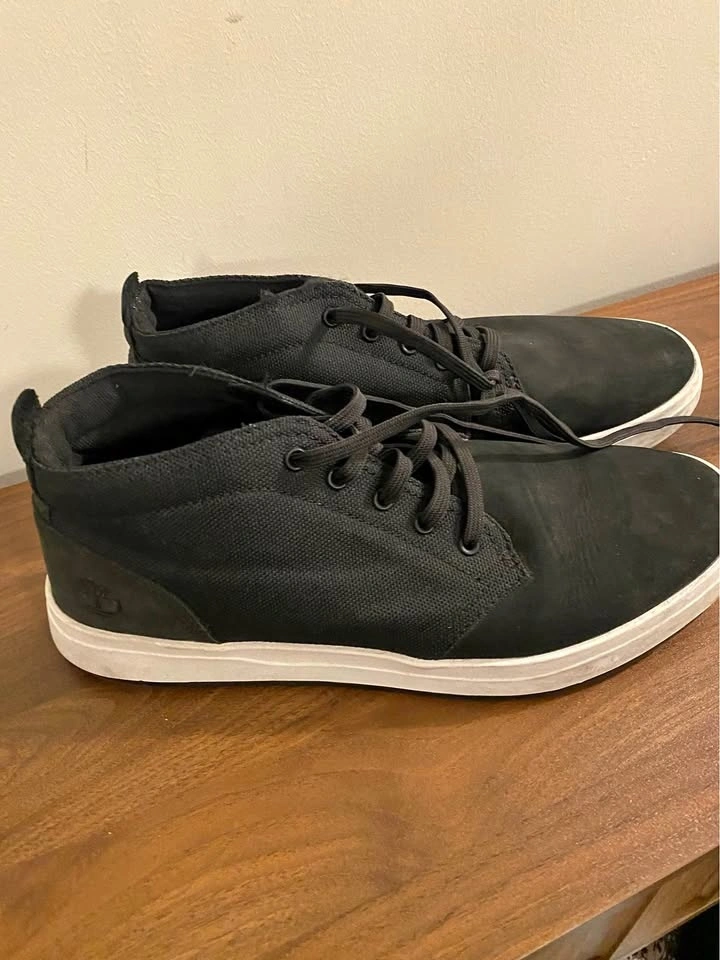 Brand new Timberland black casual sneakers, never worn. Black upper and white sole. Comfortable everyday shoes. Selling because they were never used.