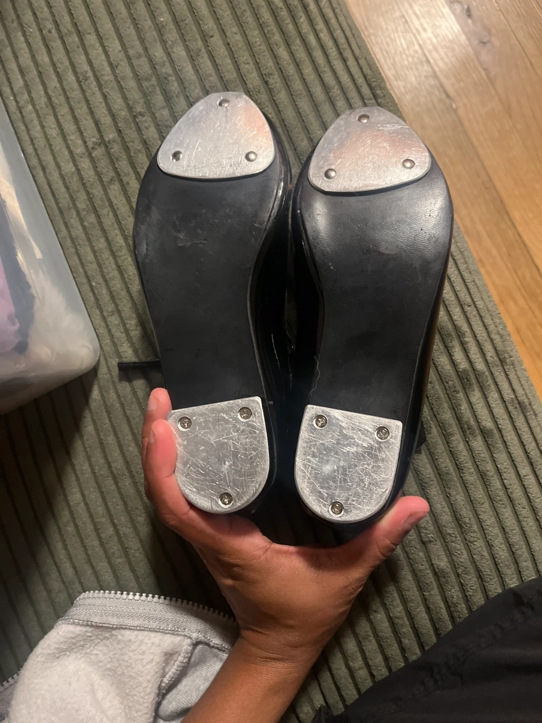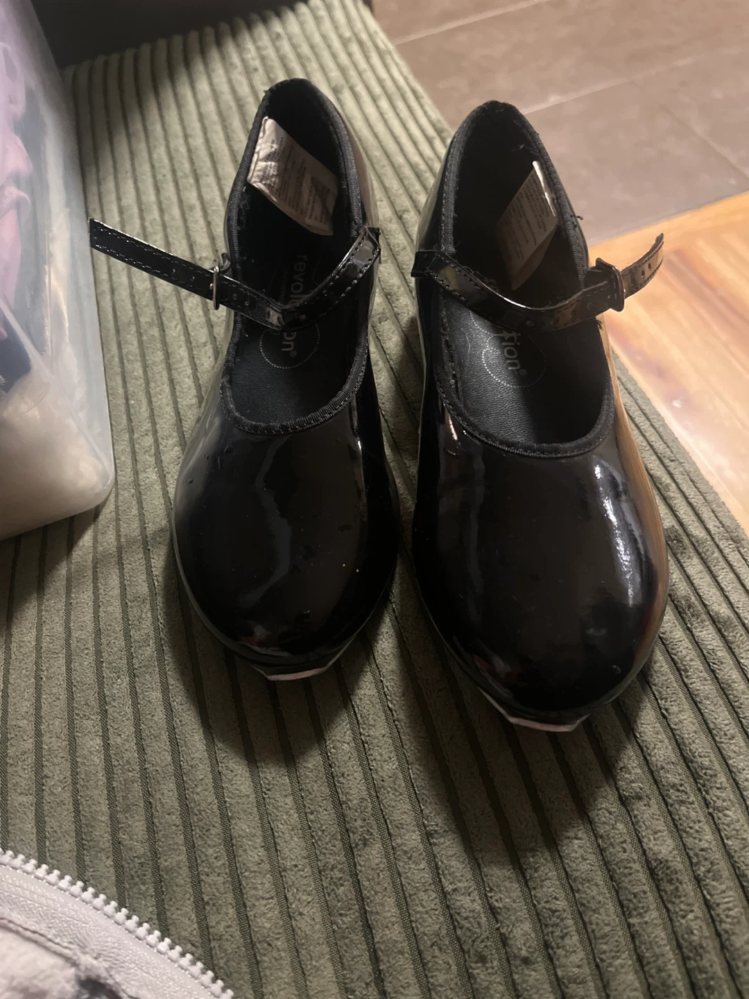Selling a pair of Revolution tap shoes in size 12.5/1 They are black and in good condition!