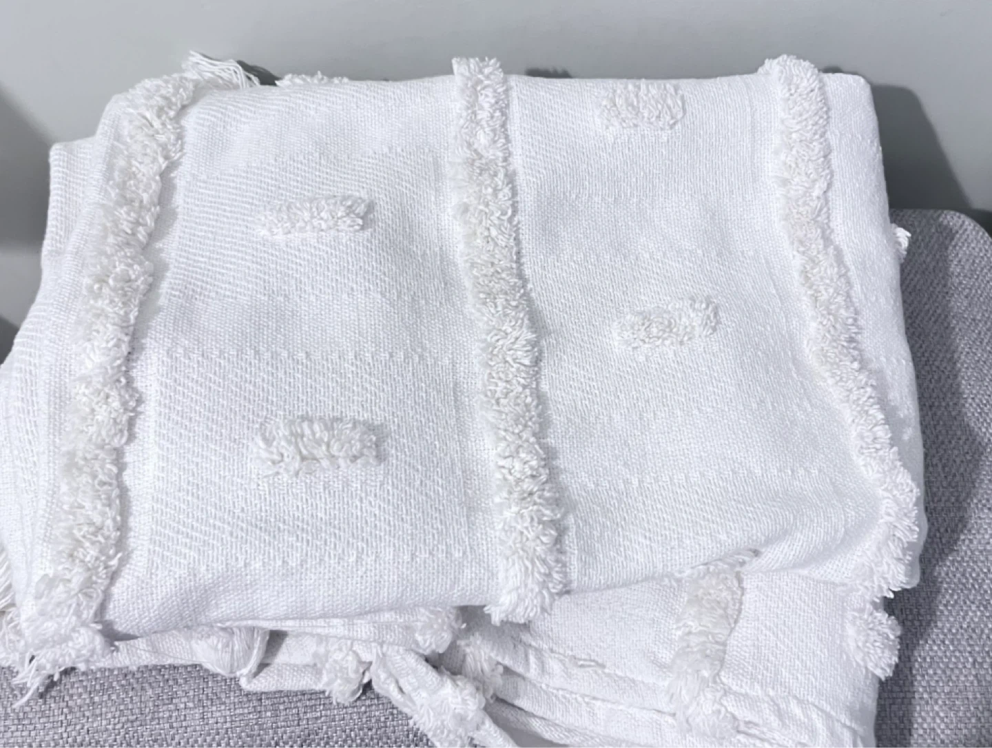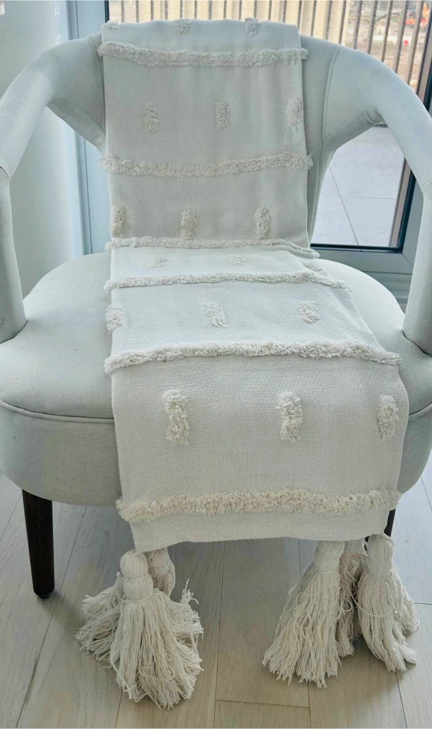 Selling a lovely cream Anko Aruba throw with large tassels. It's made of 100% cotton and is machine washable, making it easy to care for. Perfect for adding a touch of coziness to your decor! Great condition, barely used, washed.