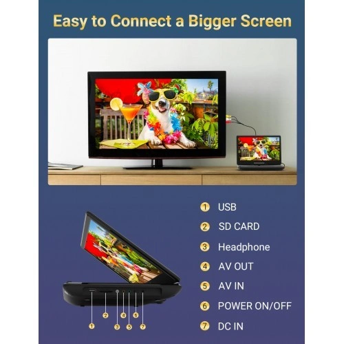 Our portable DVD player has an intelligent memory function, when you leave the video and turn it on again next time, the DVD player will automatically jump to the last viewing position to continue watching your movie.