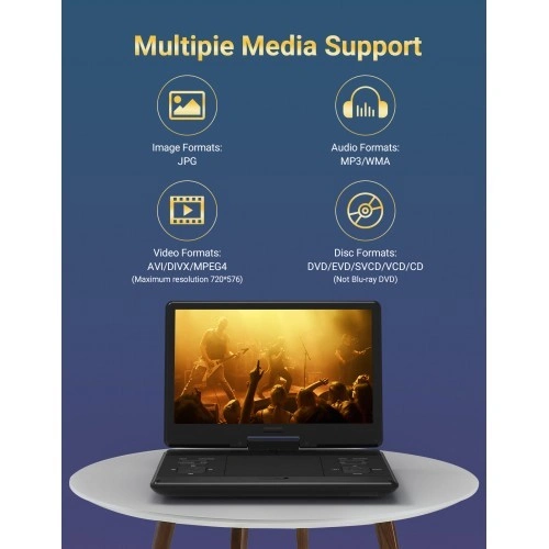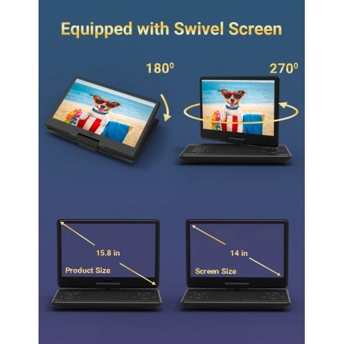 14” Swivel Portable DVD Player 1280x800 Resolution HD