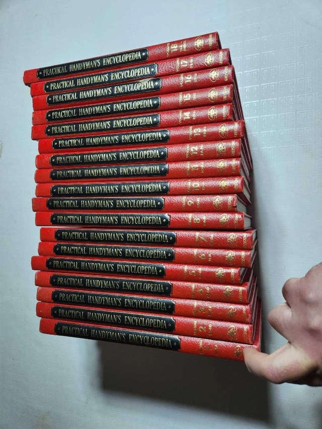 This is a complete set of the Practical Handyman Encyclopedia, a comprehensive guide for home repairs and DIY projects. The set includes all 18 volumes, offering detailed instructions and illustrations. These books are used and have some wear, but are still in good condition for reference and project planning. * Complete 18-Volume Set * Detailed Illustrations * Comprehensive DIY Guide Thinking of fixing that leaky faucet or building a birdhouse? This encyclopedia set might just be your new best friend! A treasure trove of tips and tricks awaits. If the ad is up, the books are available!