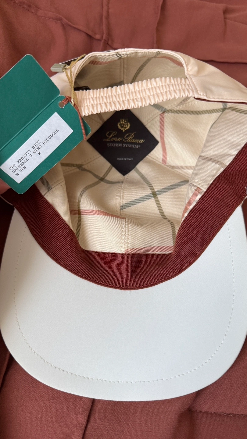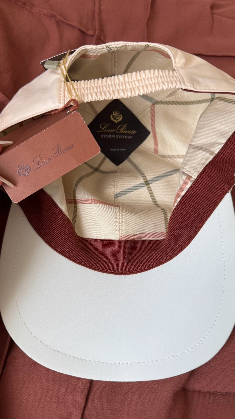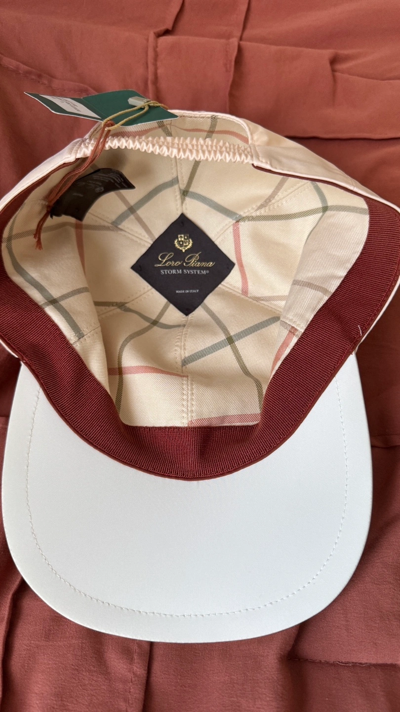 Selling a Loro Piana baseball cap in almond blossom and white! It's a size M and features the Storm System microfiber. The original price was $500