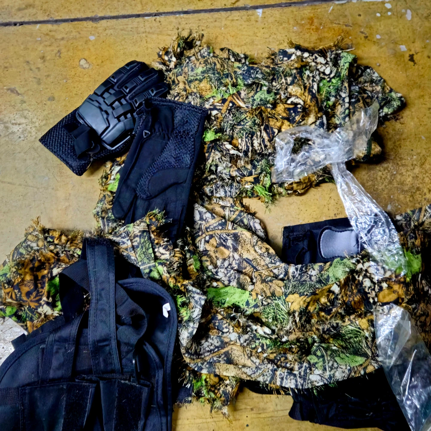 This Tippmann Cronus marker features a compact military look and is easy to accessorize. It's a semi-automatic paintball marker. Package includes gloves, mask, vest, and camouflage ghillie suit.