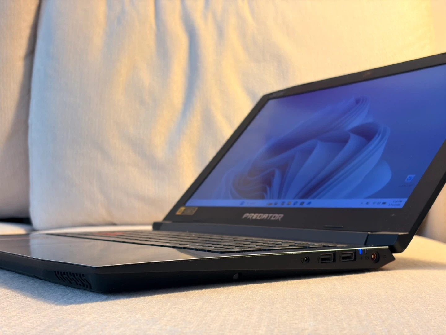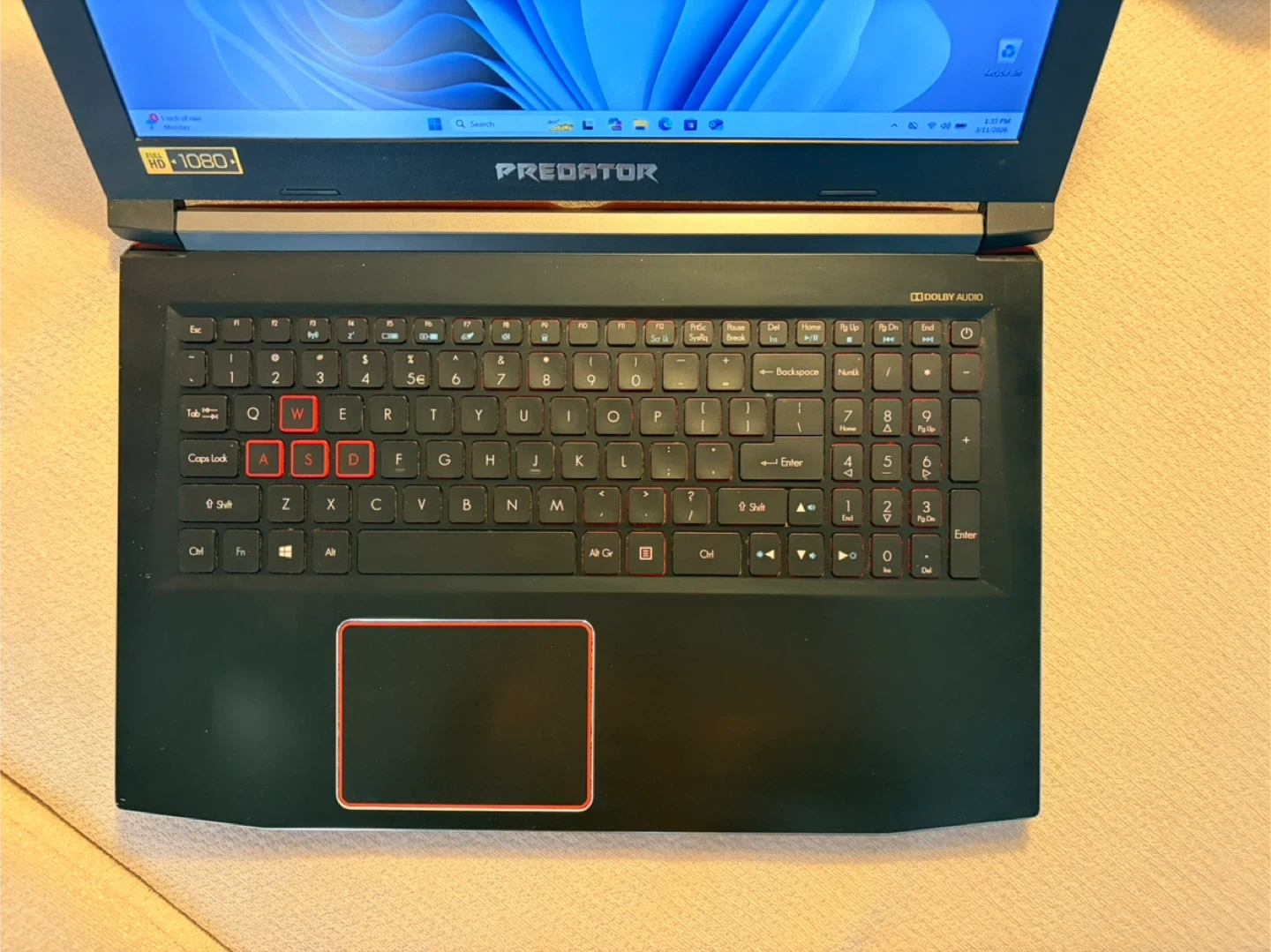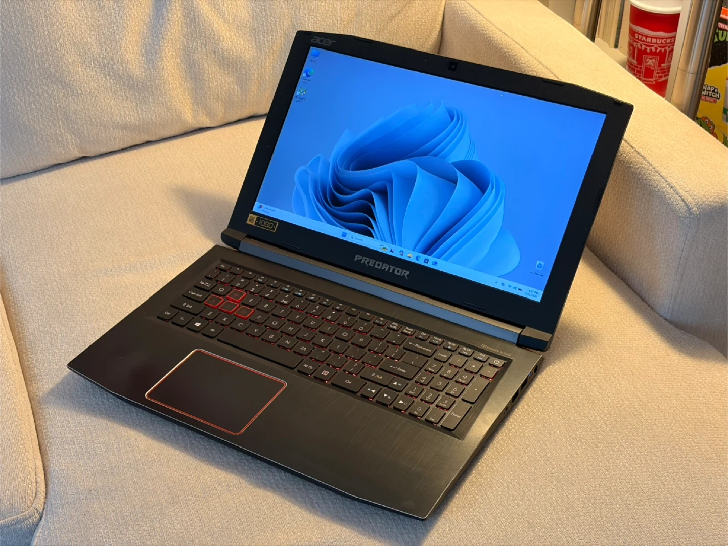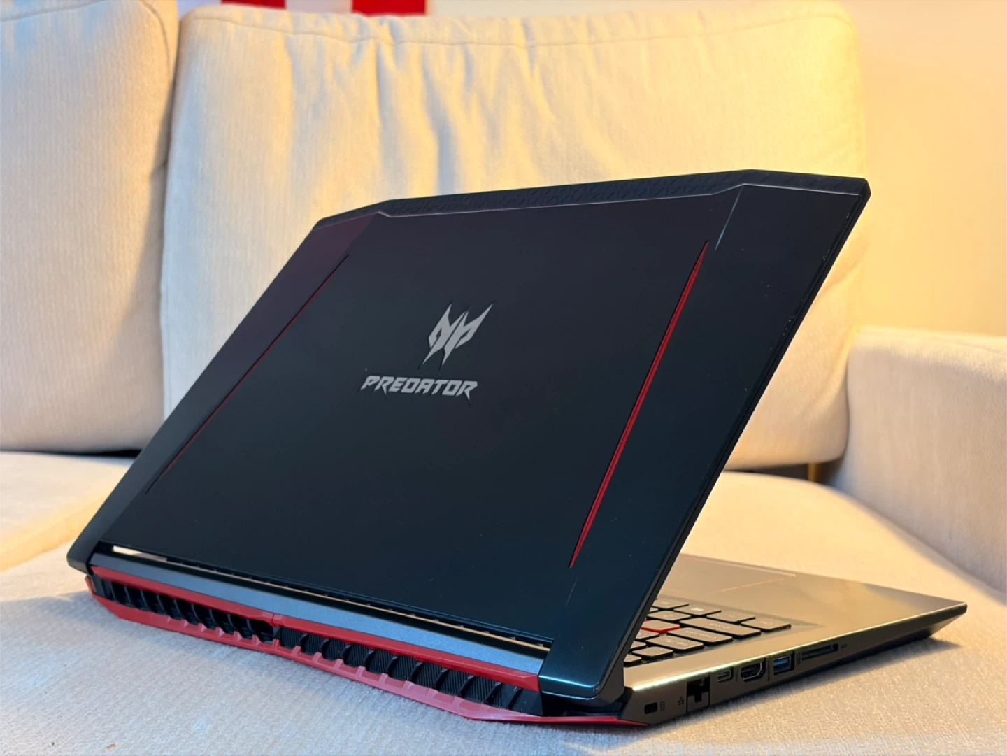 This Acer Predator laptop is a powerful machine for gaming and everyday use. It features a vibrant display and a backlit keyboard for enhanced visibility. The sleek black design with red accents makes it stand out. Its compact size makes it portable for on-the-go performance!