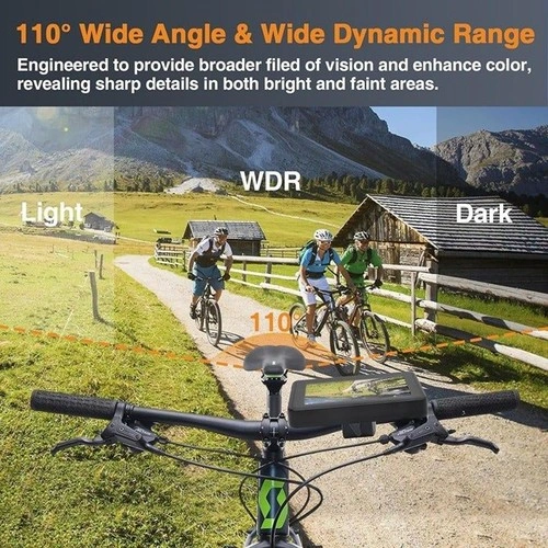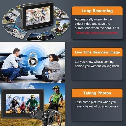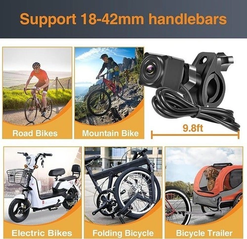 This bike camera offers a 3-in-1 function: loop video recording, taking photos, and acting as an upgraded rear-view mirror. It records scenery and helps you see vehicles behind you for added safety. Supports up to 128GB memory cards (not included). Features 1080P HD images with color night vision on a 4.3-inch monitor and a 110° wide field for stable, safe riding. The built-in 5000 mAh battery provides 4-5 hours of continuous use and charges via a Type-C cable. Made from durable, wear-resistant, and corrosion-resistant nylon, it's waterproof for use in any weather. The monitor and camera are connected by a 9.8ft cable, making it compatible with most bikes including mountain, road, and e-bikes. Easy installation on handlebars/poles with the included bracket. Let me know if you're interested!
