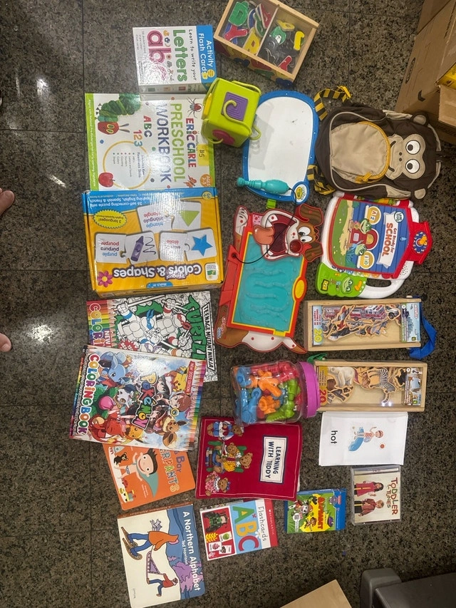 This preschool bundle includes a variety of educational toys and books designed to engage young minds and foster early learning skills. It features alphabet books, puzzles, coloring books, and interactive learning tools. Most items are in good condition and have provided hours of educational fun! * Alphabet Books and Flashcards * Coloring and Activity Books * Shape Sorting Toys * Interactive Learning Pads Based on similar listings on Kijiji, a preschool bundle like this is typically priced between $20 and $40. Given the variety and overall good condition of the items, I've priced it competitively. If the ad is up, it's available! Pick up in NE Marlborough
