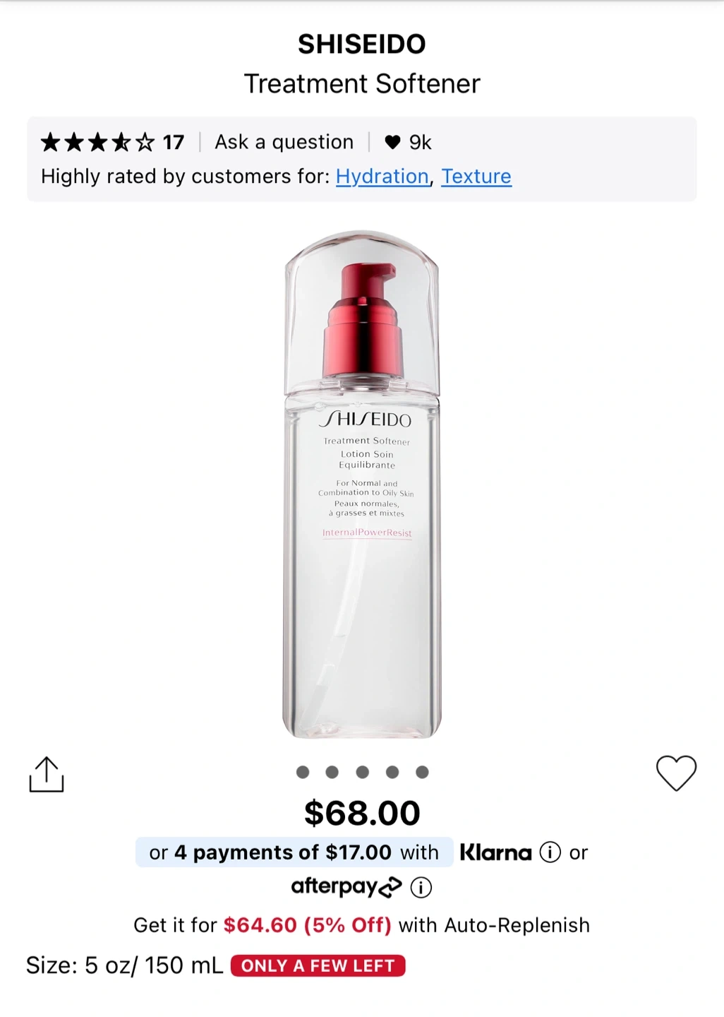 This is a Shiseido Treatment Softener lotion. It's 30ml or 1 FL. OZ. It's made for normal and combination to oily skin.