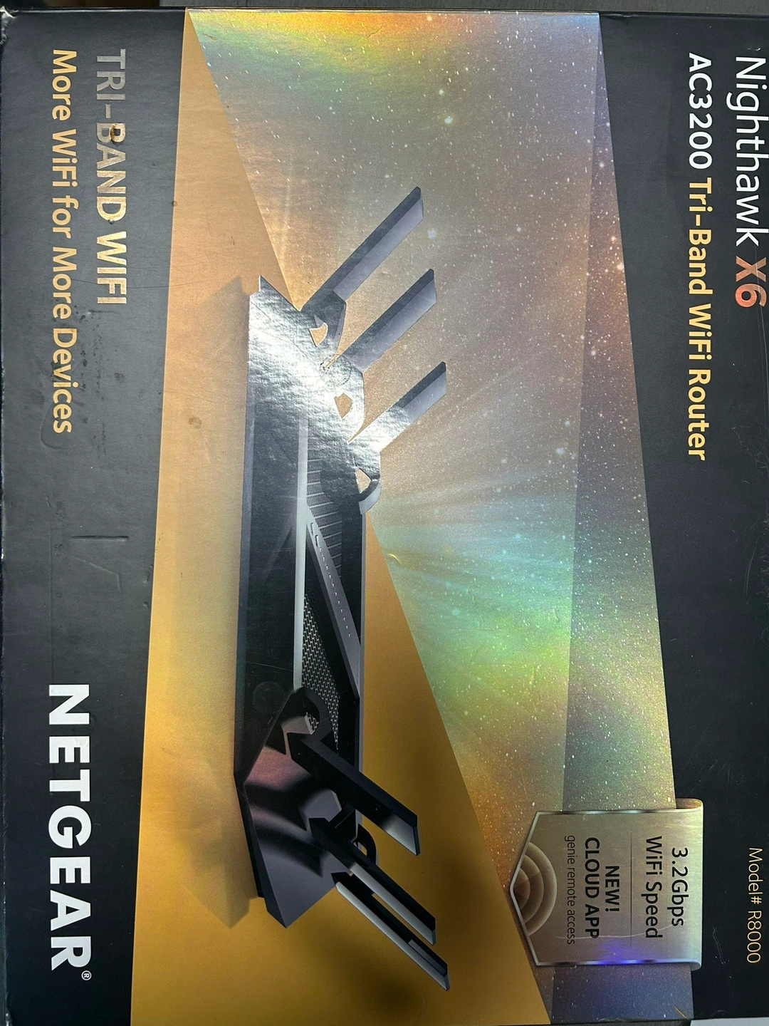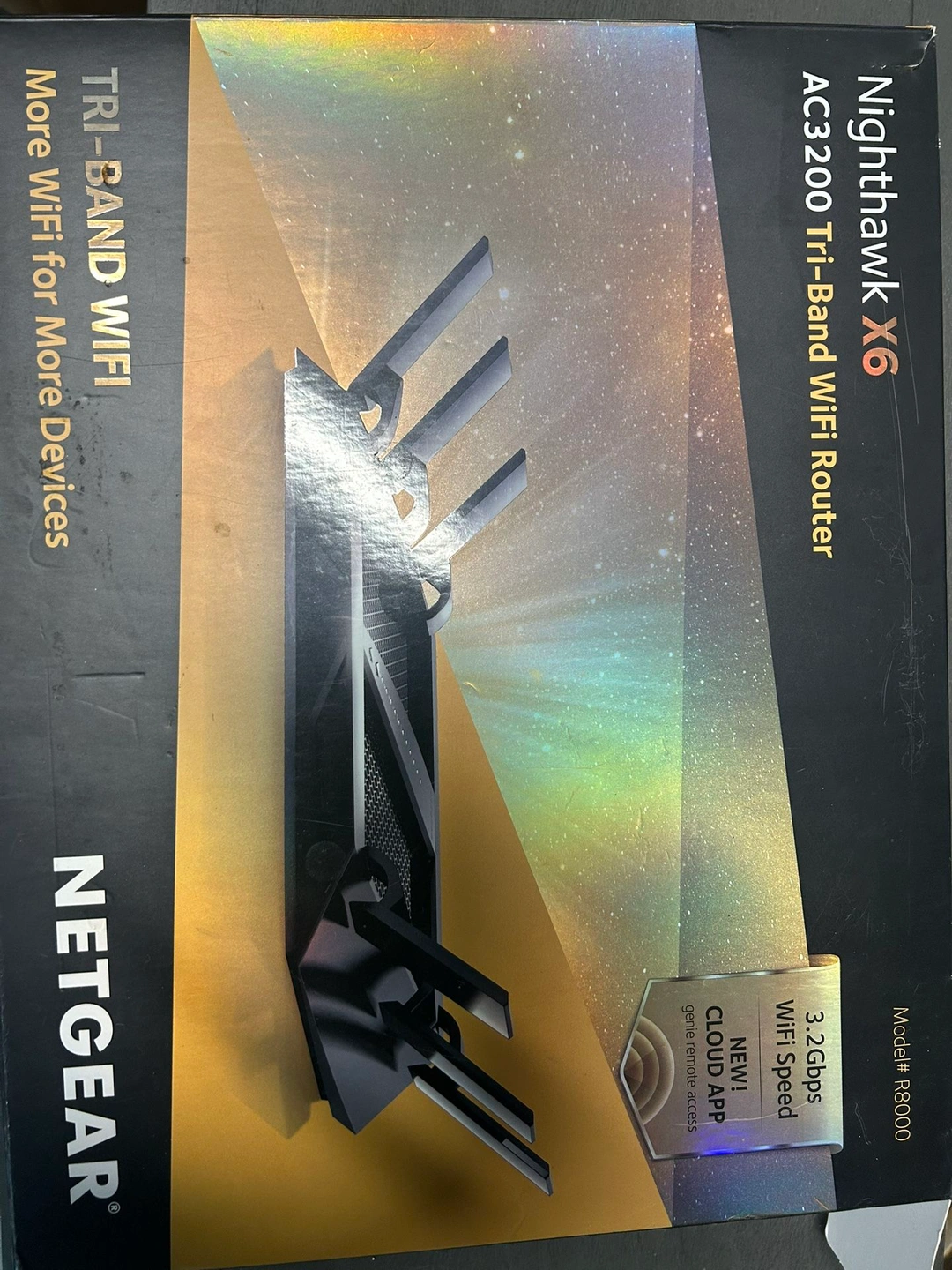 NETGEAR Nighthawk X6 AC3200 Tri-Band WiFi Router R8000-100NAS. This router offers exceptional WiFi speed and range for all your devices. Feel free to message if you have any questions!