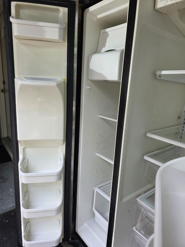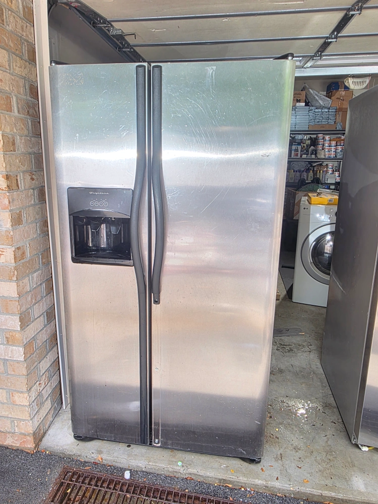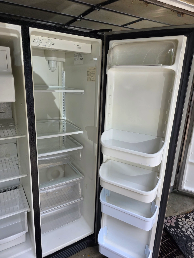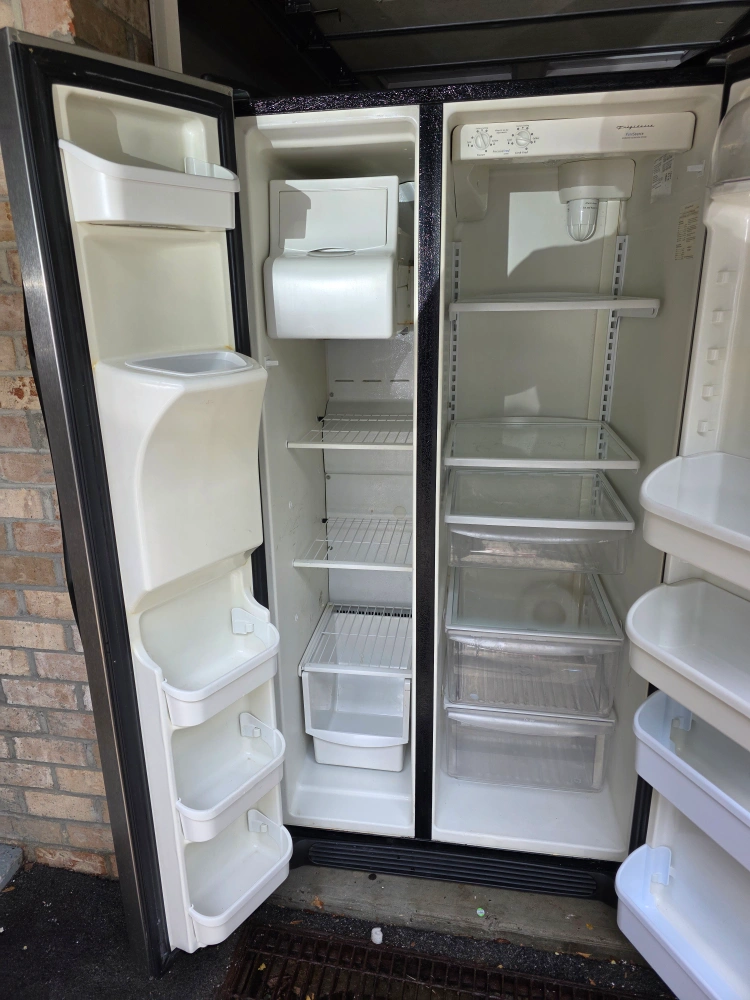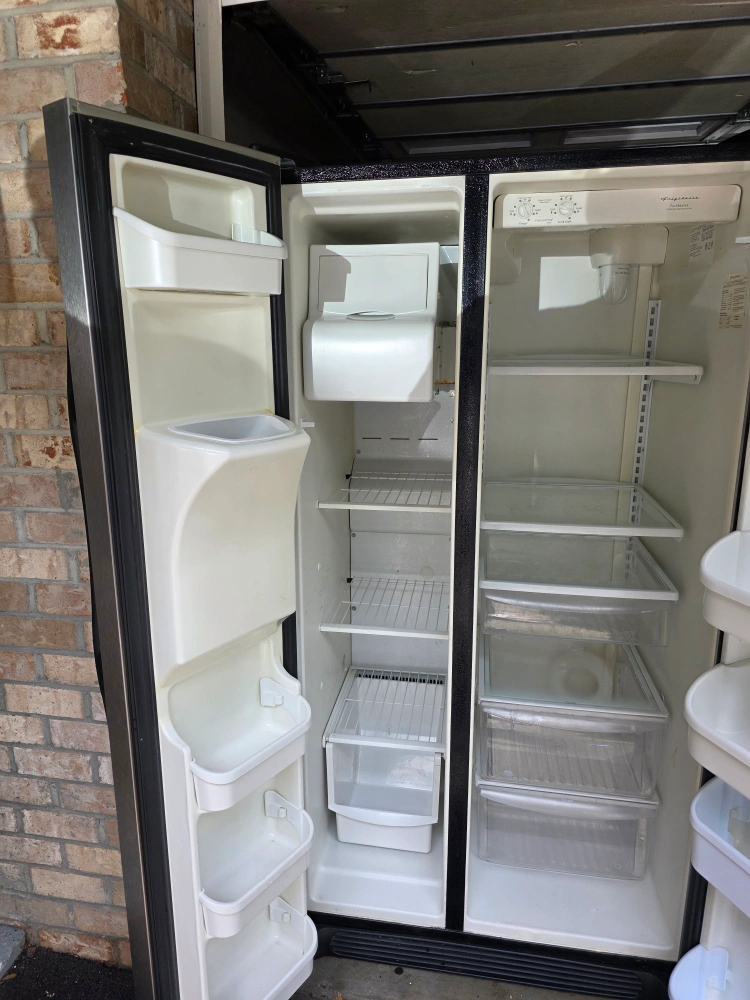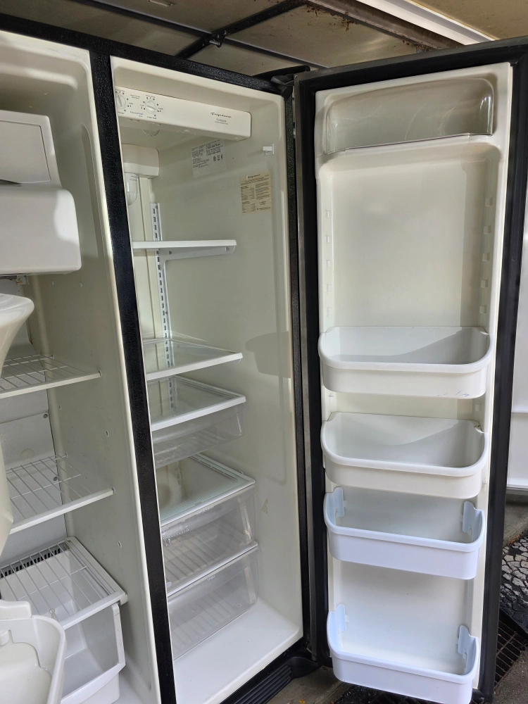 Selling a Frigidaire side-by-side refrigerator. It's in working condition may need a checkup service! It features adjustable temperature controls for both the freezer and fresh food sections. This refrigerator has plenty of storage with shelves and bins in both the refrigerator and freezer compartments. Can deliver for 100 extra.