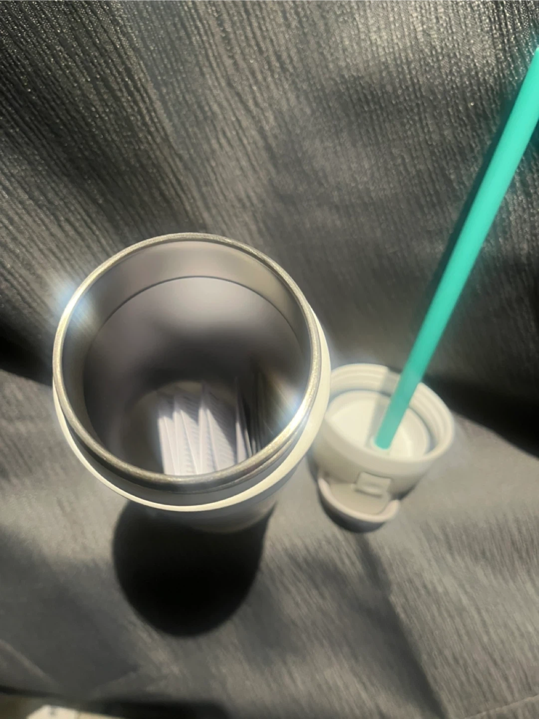 This Owala FreeSip water bottle is white and holds 24 oz (710 ml). It's made for convenient drinking with its unique lid design. It includes a straw for easy sipping.