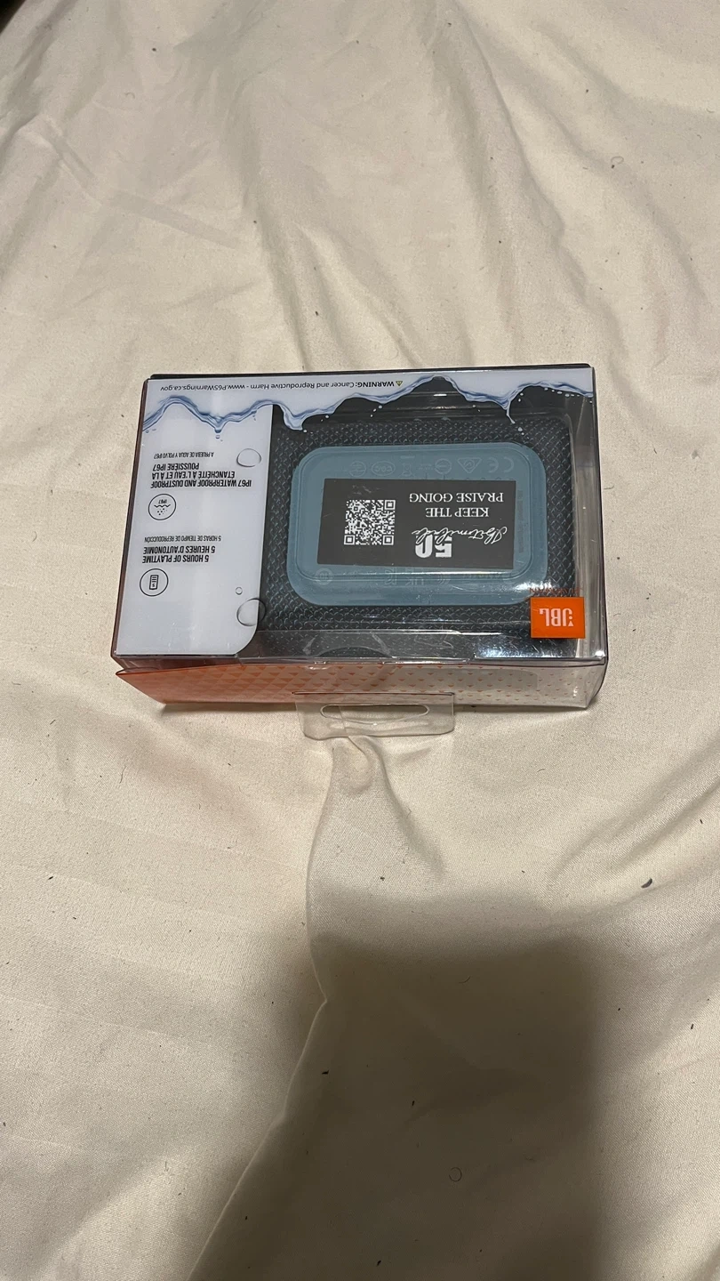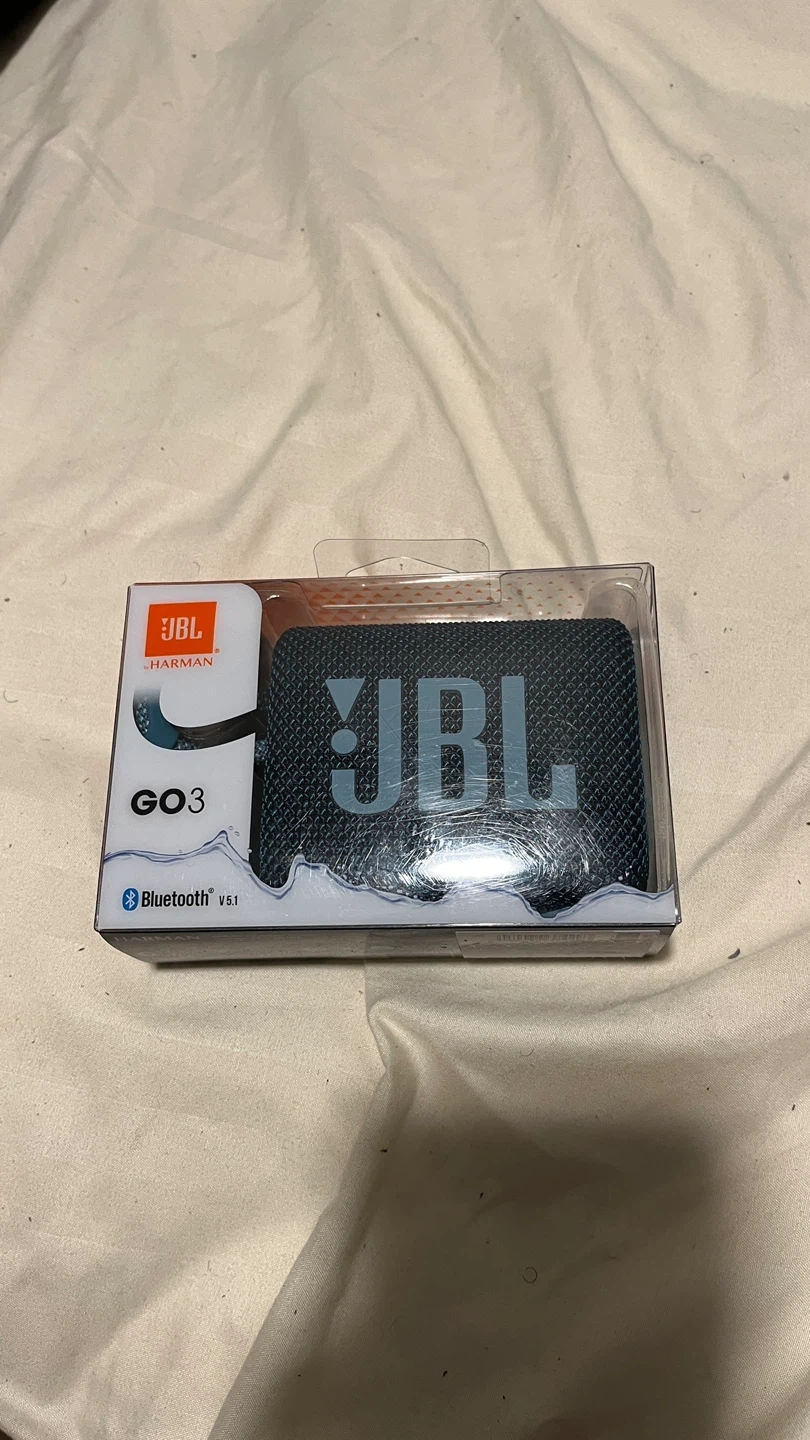 This is a JBL GO 3 portable speaker. It's waterproof and dustproof with Bluetooth v5.1. It offers 5 hours of playtime. This speaker is great for outdoor adventures!