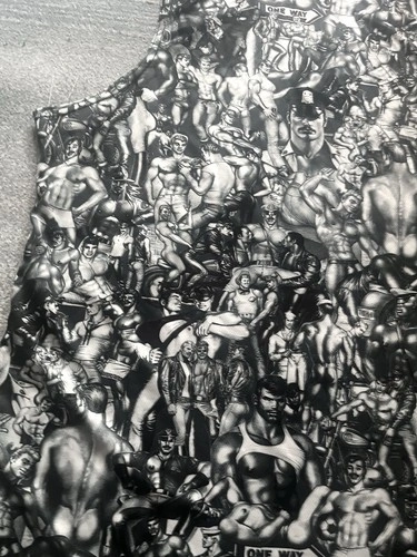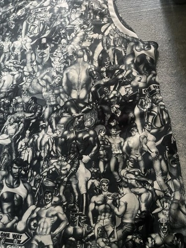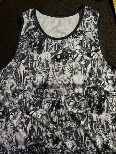 From a disowned storage. Never been worn, not even tried on. Chest: 44”, Length: 28.5”. Machine wash, hang dry only. Great unique collage pattern that repeats front and back.